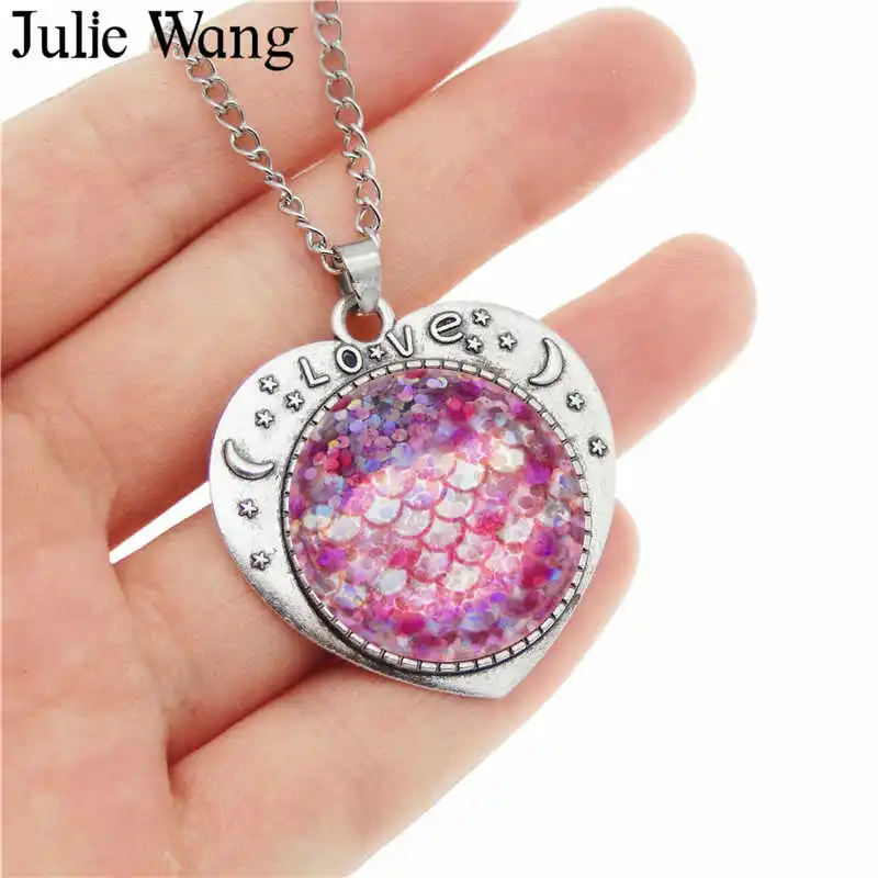 Product Features: 25mm Glass Mermaid Fish Scale Necklace Women Heart Cabochon Setting Pendant Collar Chain Bohemian Fashion Jewelry