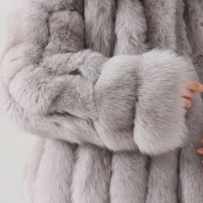 Зимнее женское натуральное вязаное Норковое Пальто с воротником из меха енота