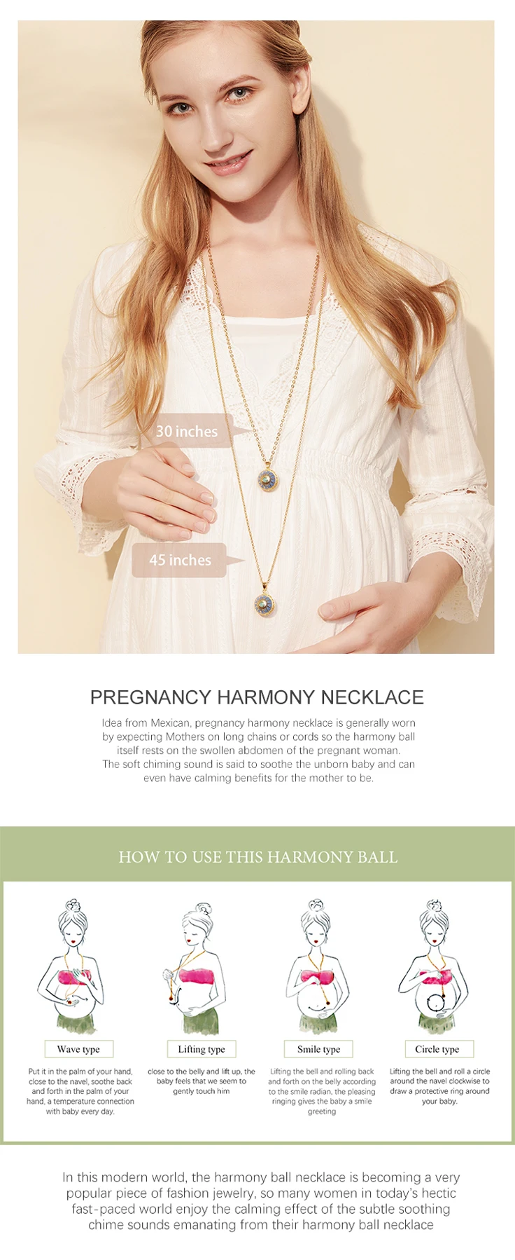 Размер ожерелья: 30 дюймов (76 см),45 дюймов (114 см).