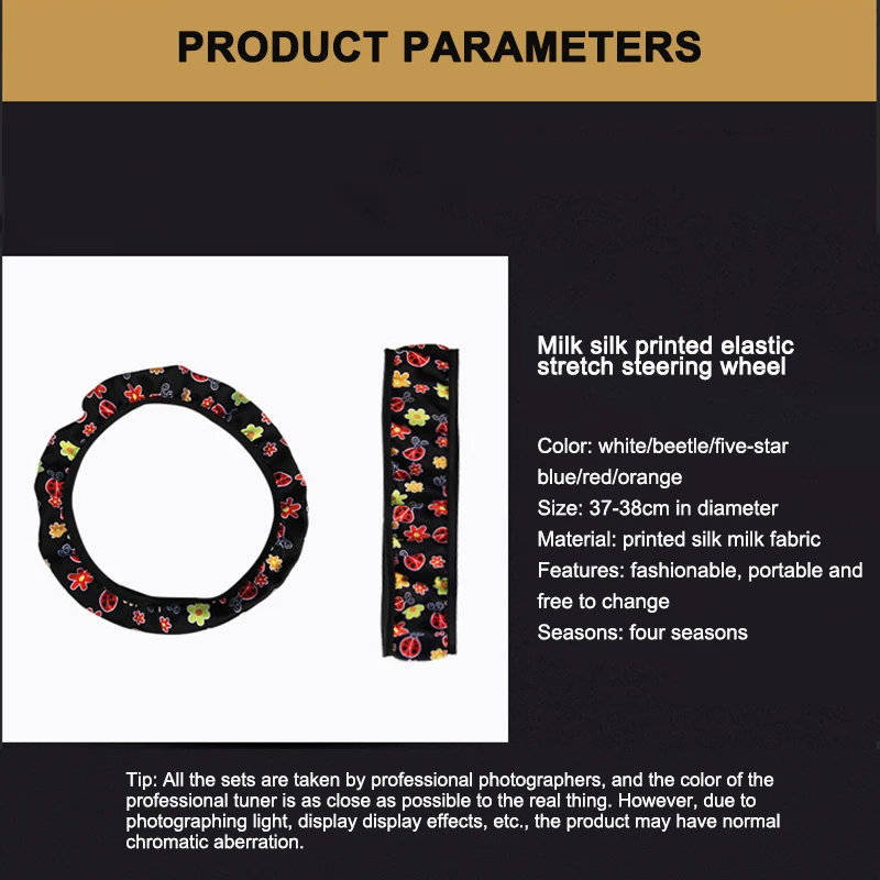 The simple flowers pattern and beetles pattern with bright color can decorate your car steering wheel in fashion style. Besides, the black base color is compatible with most car inner decoration style.