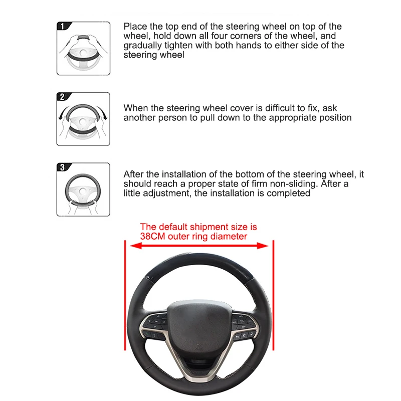 Suitable steering wheel diameter: 37-38cm/ 14.54-14.93inch