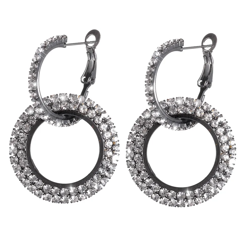 New Fashion Luxury Round Diamond Earrings Women Silver Gold Rosegold Glitter Stud Earring
