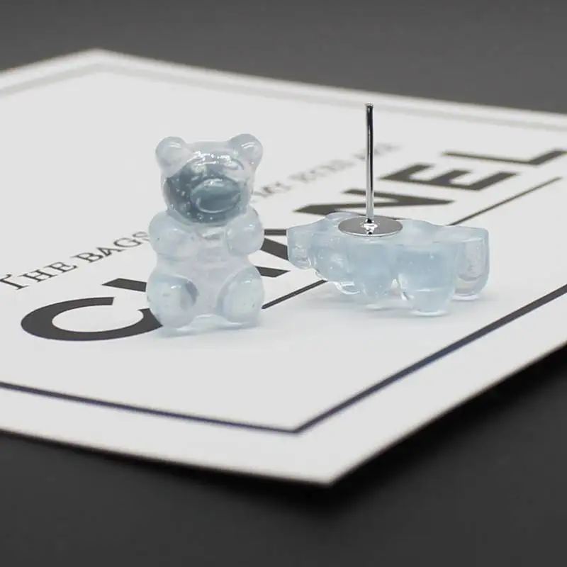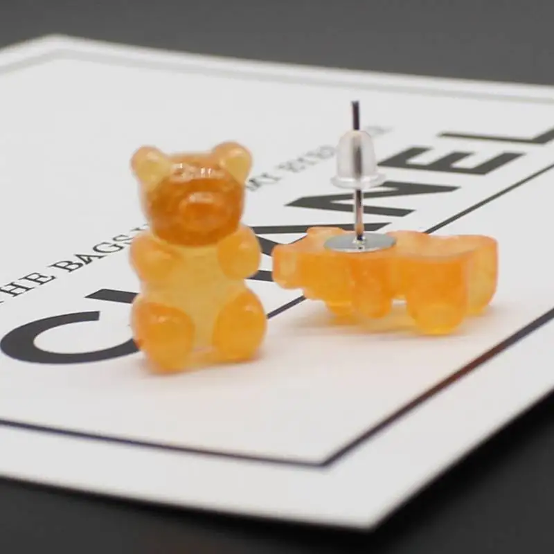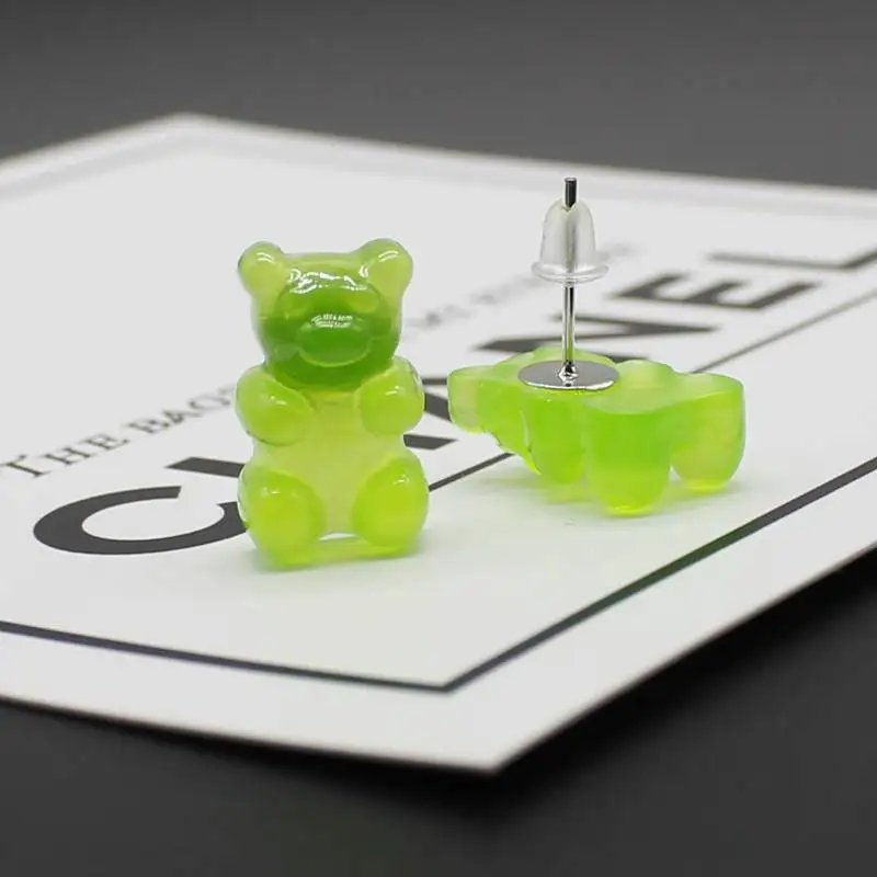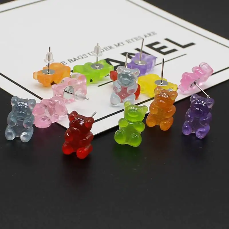 Милые разноцветные Мультяшные серьги в виде медведя Конфета из смолы ручной работы, цветные серьги с животными, Дневник для друзей, забавные ювелирные украшения