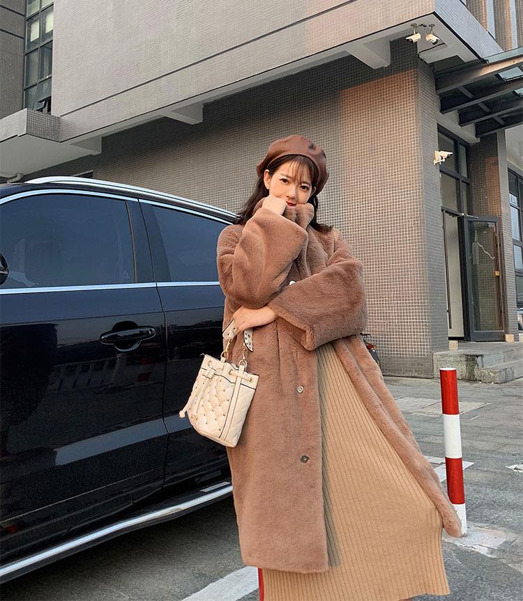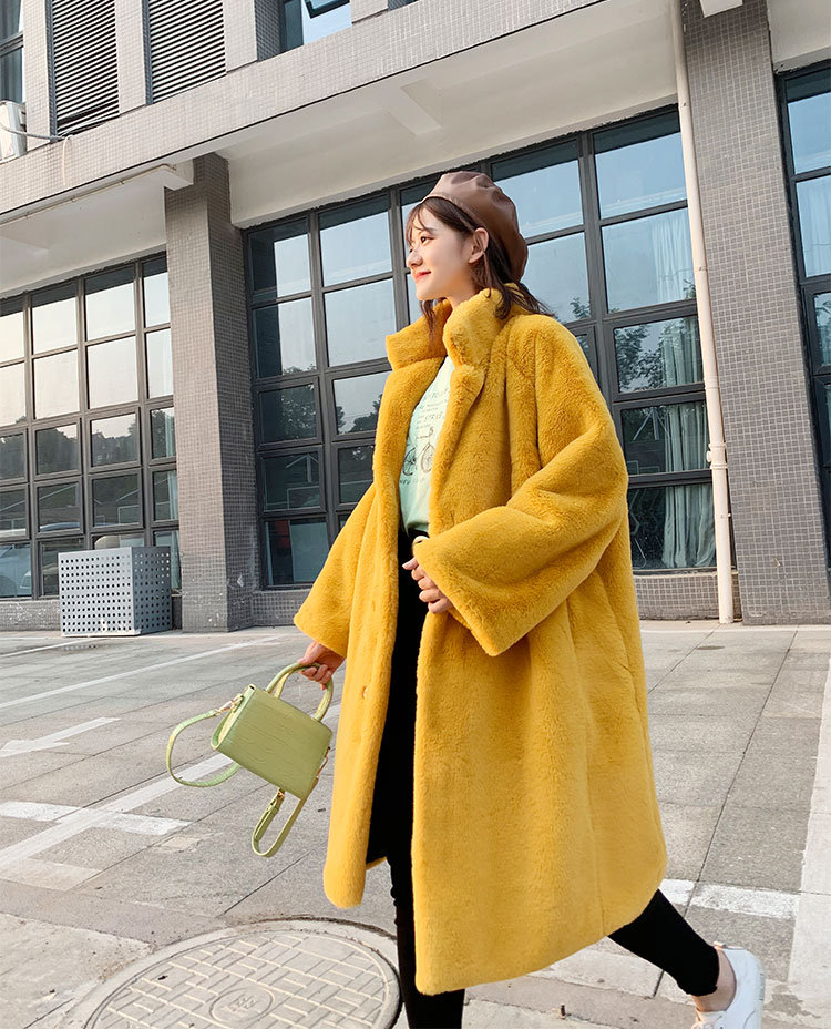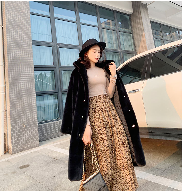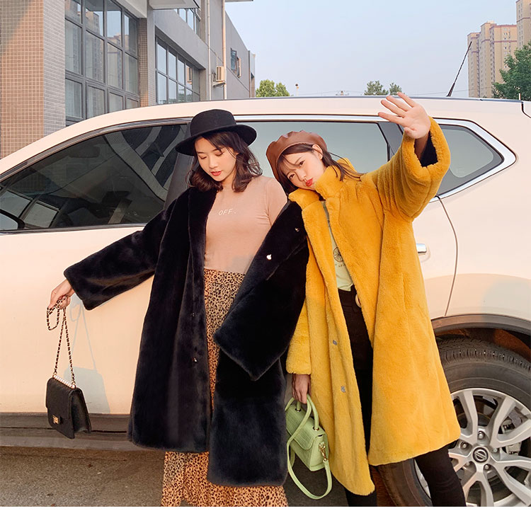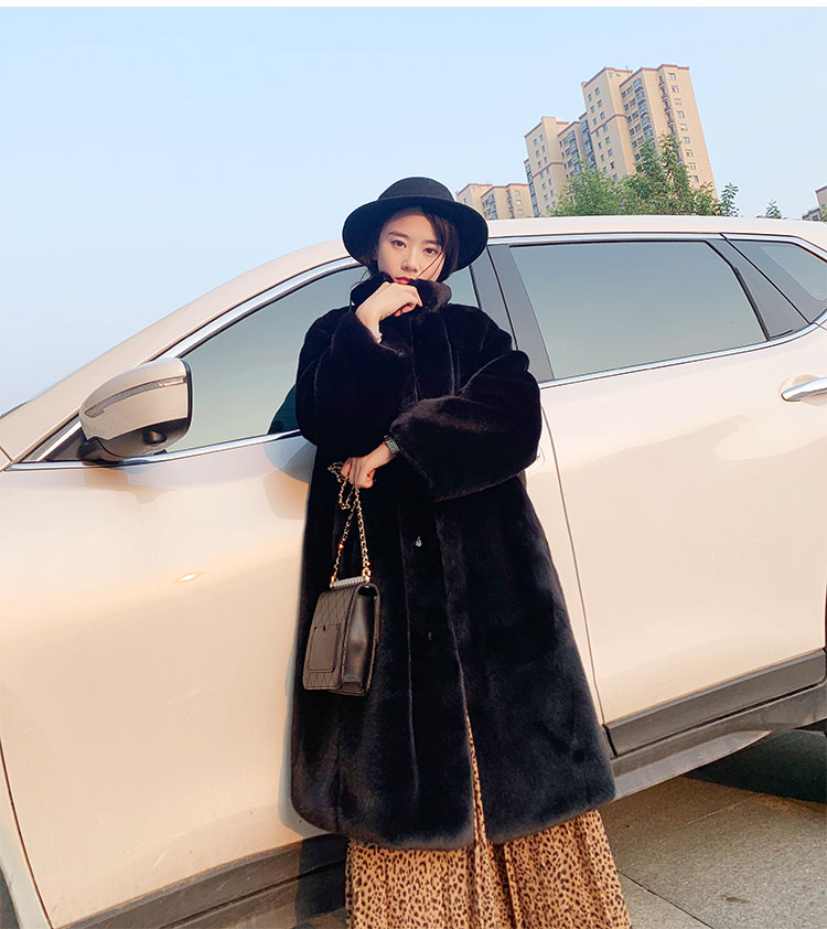 Lautaro Зимнее длинное черное теплое женское пальто из искусственного меха в стиле