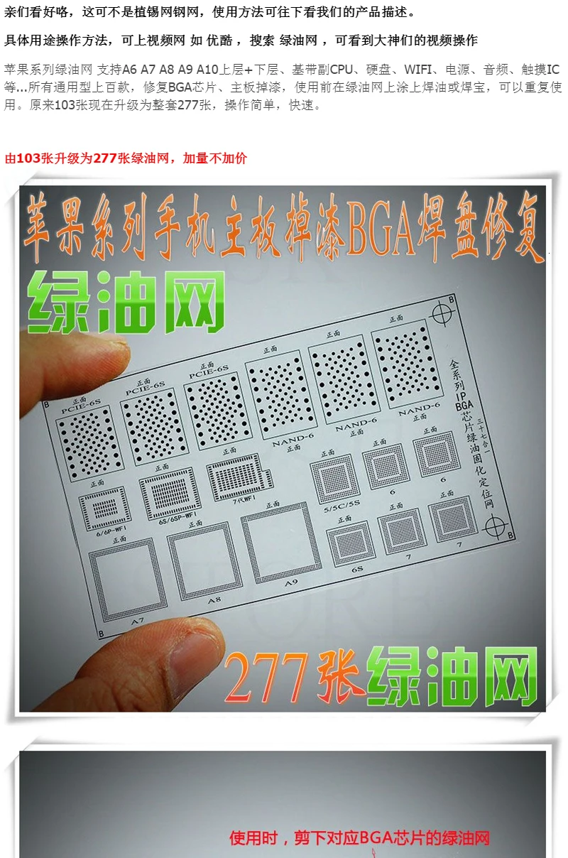 WYLIE Willie apple вся серия зеленых масляных сеток поддержка A6 A7 A8 A9 A10 верхний + нижний, ЦП, жесткий диск, wifi, блок питания, аудио, сенсорный IC и т. Д... Все универсальные сотни моделей, ремонт, чип BGA, материнская плата с краской, перед использованием в зеленом масле, покрытом маслом или пайки онлайн-сокровище, может быть повторно использовано., управление простое, быстрое, точное и идеальное, 100% решение