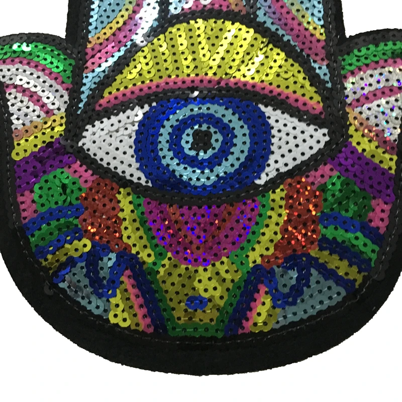 Новинка 2020, большой размер, расшитый вручную, с блестками, Железный На заплатках, для одежды, цветной, с божьей ладонью, с блестками, 2 шт.