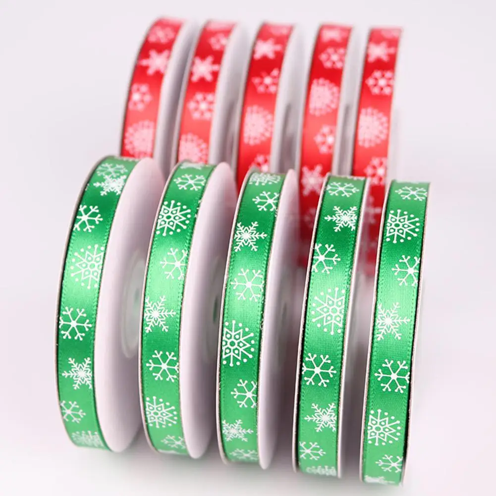 22 м Рождественская Снежинка атласная лента с принтом DIY Подарочная Свадебная оберточная Декорация