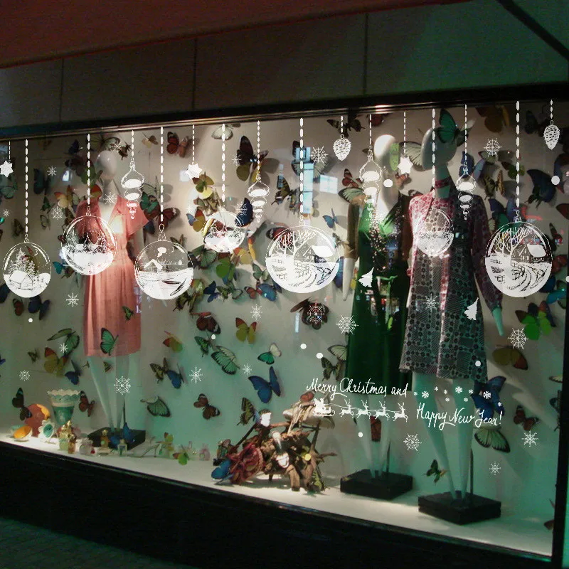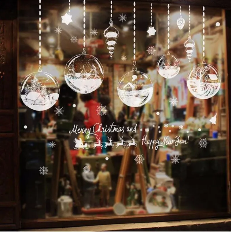 Home Decor PVC Glass Store Window Sticker Hanging Ball Pattern Wall Stickers Wallpaper New Year Christmas Decorations For Home