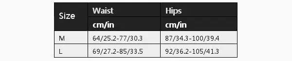 Размер::L | Талия (см/дюйм)::69/27.2-85/33.5 | Бедра (см/дюйм)::92/36.2-105/41.3 |