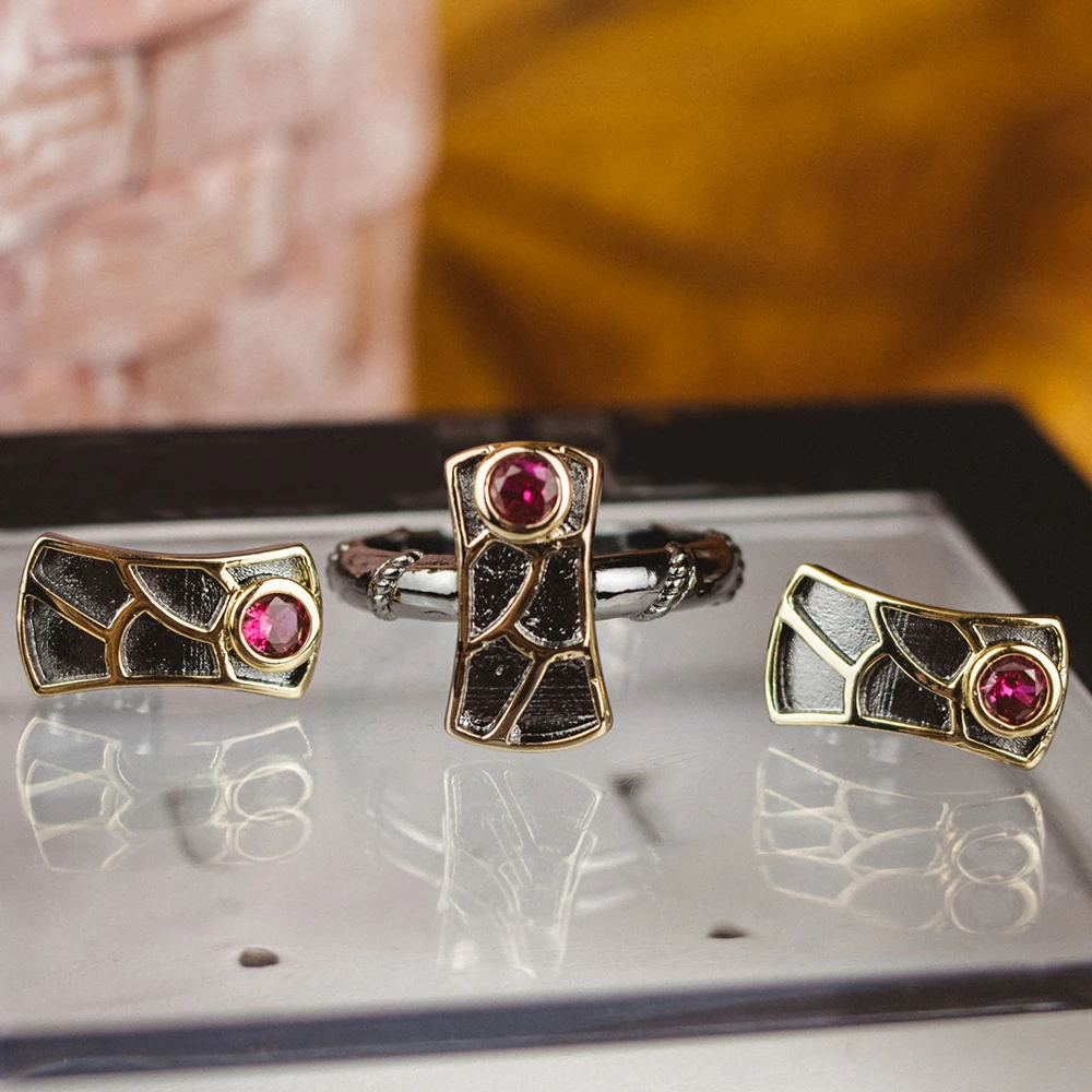 Сделанные Медь металла, пистолет черный + покрытые настоящим золотом 2 тона покрытие, вымощенный набор с круглой фуксия кубического циркония камни. -- Высокое качество -Быстрая доставка -- Хороший ювелирные изделия ручной работы -- Не вызывает аллергии, не содержит никель