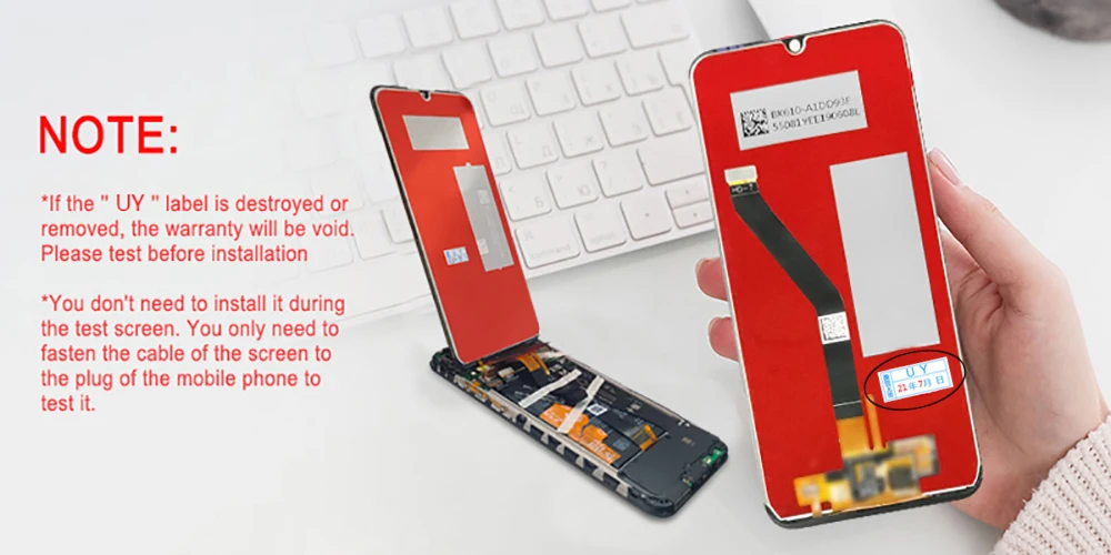 2. Take out screen of you ordered and confirm that new screen of matches your phone. Check appearance of screen, and then test screen (important), (note: do not install screen during test) to confirm that it displays normally.