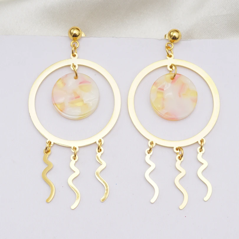 Новые корейские Ретро трендовые круглые серьги-гвоздики из акриловой смолы