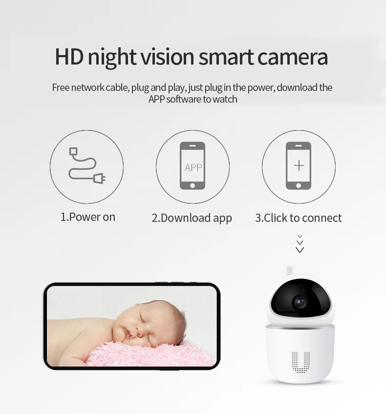 Смарт-камера ночного видения HD, бесплатный сетевой кабель, подключи и работай, просто подключите питание, Загрузите программное обеспечение приложения для просмотра
