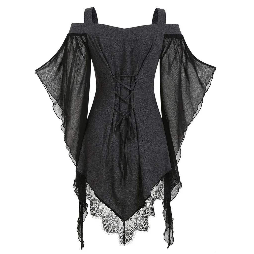 Женская готическая Футболка с рукавами-бабочками и кружевными вставками, крест-накрест, топы размера плюс
