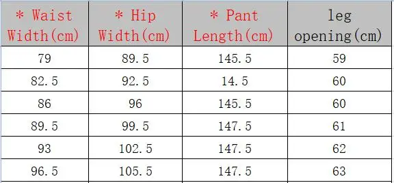 Таблица размеров