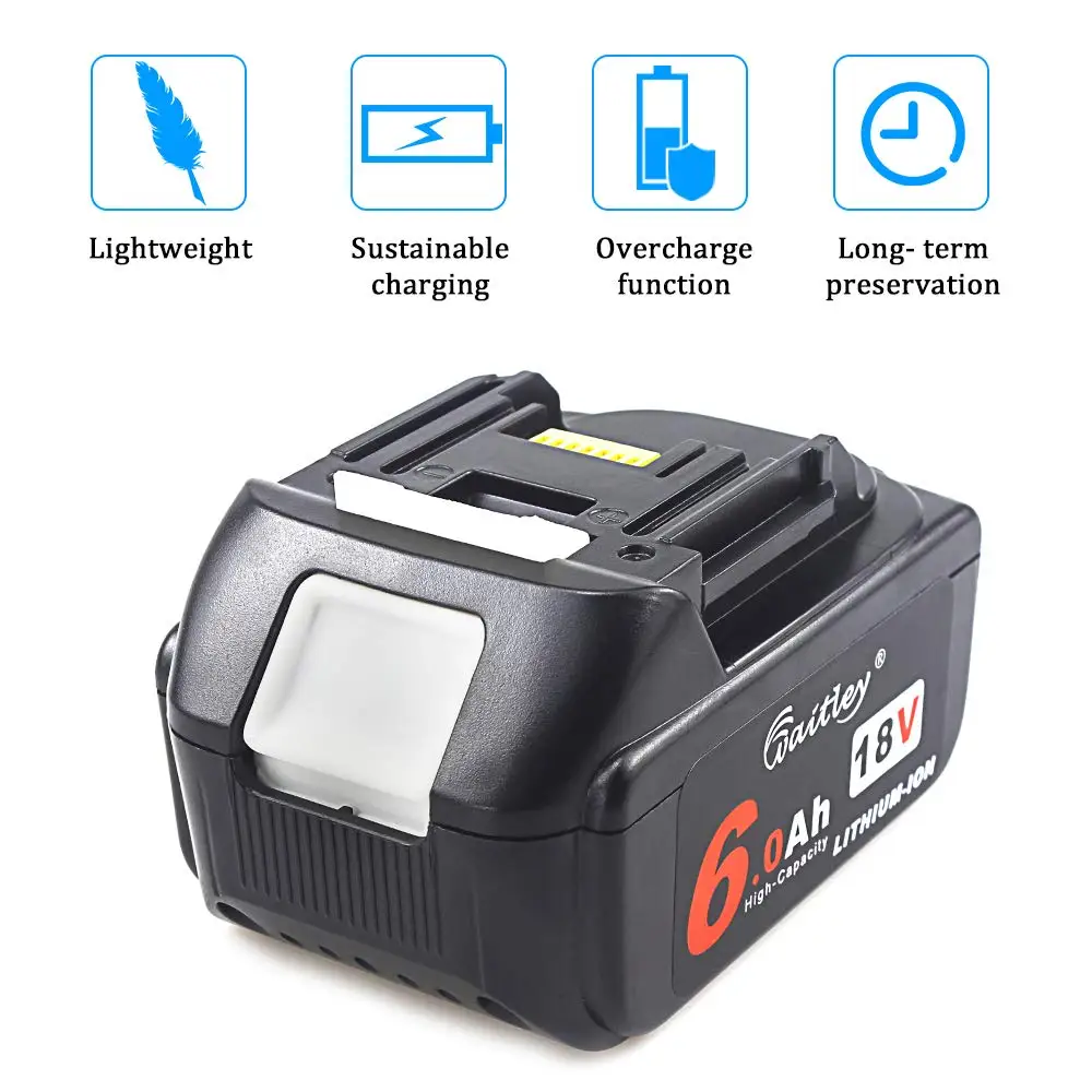 Сменный литий-ионный аккумулятор Waitley для электроинструментов Makita, 18 В, 6 000 мА/ч, 6,0 А/ч, LXT BL1860B, BL1860, BL1850