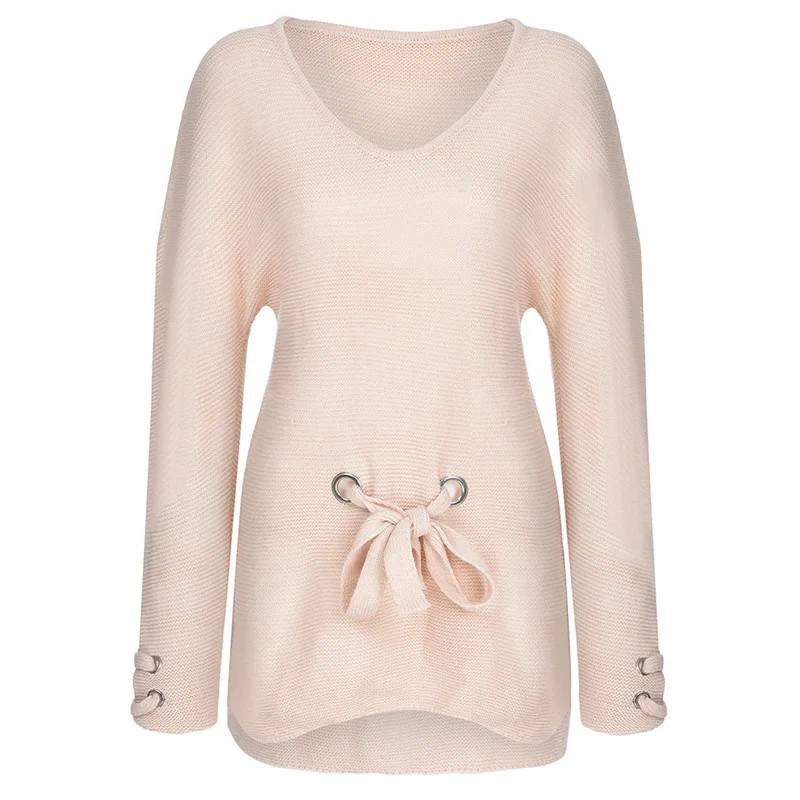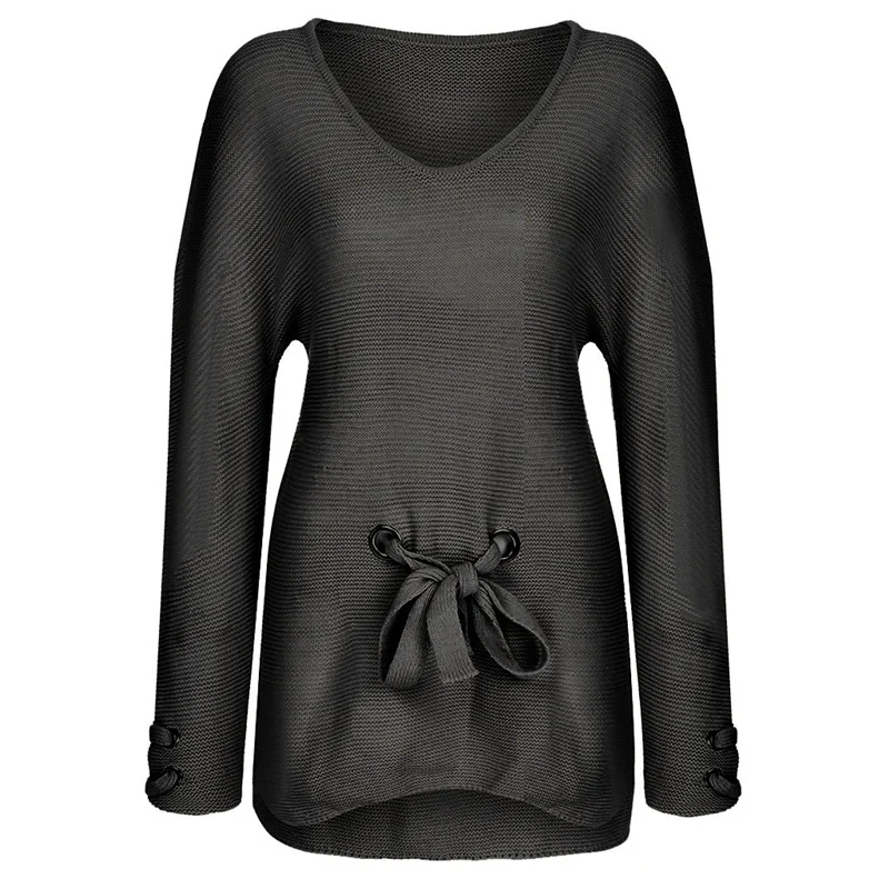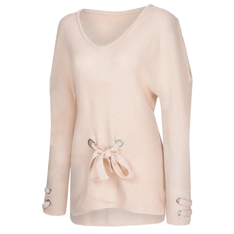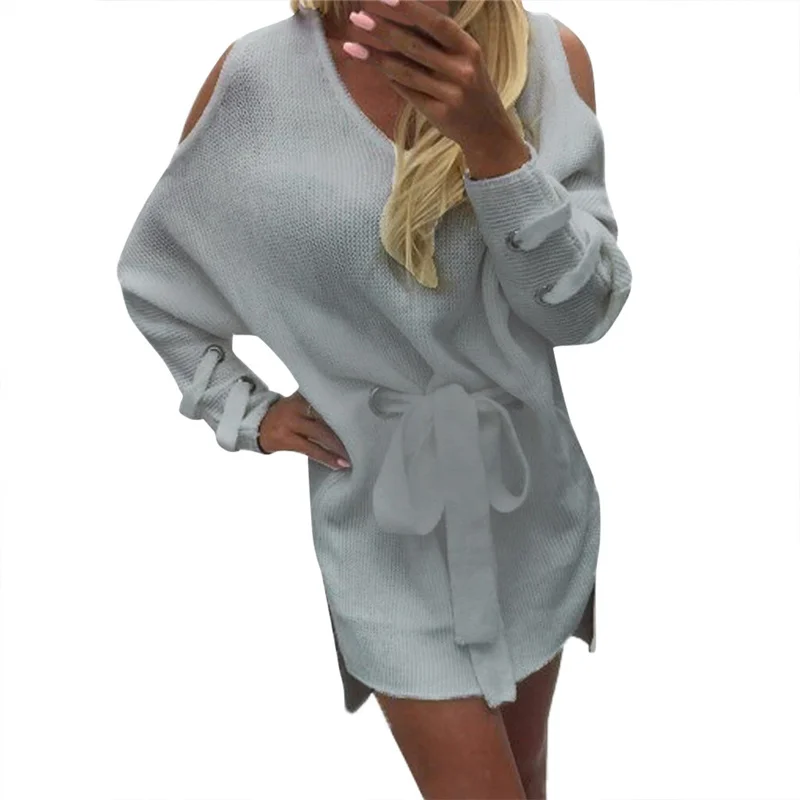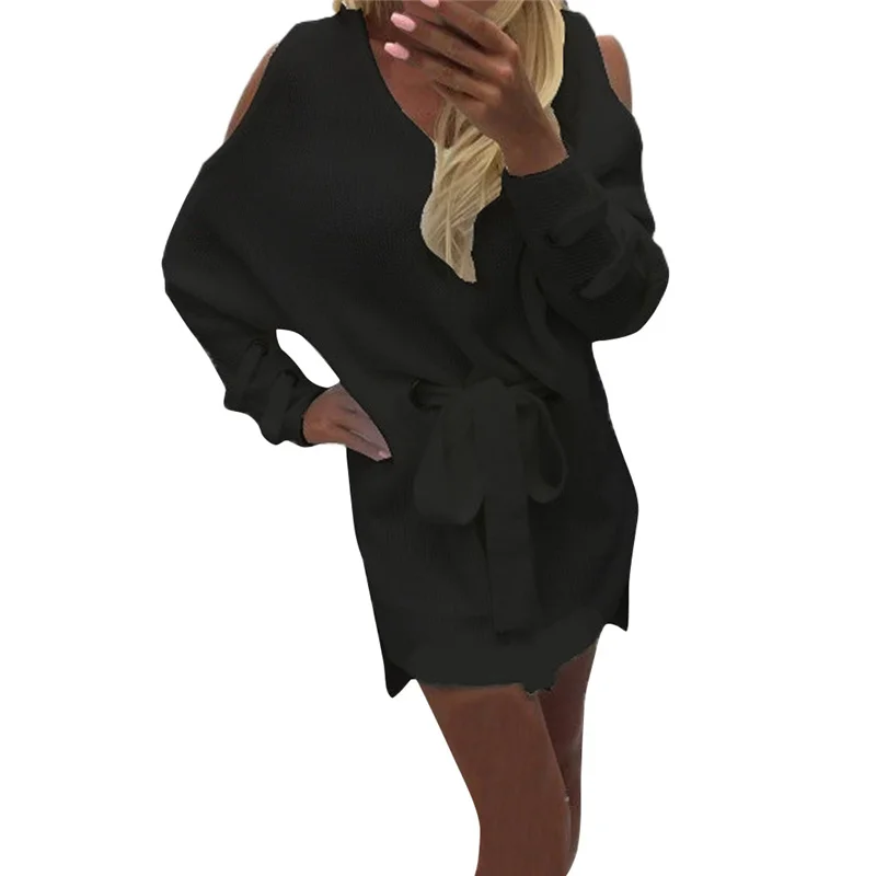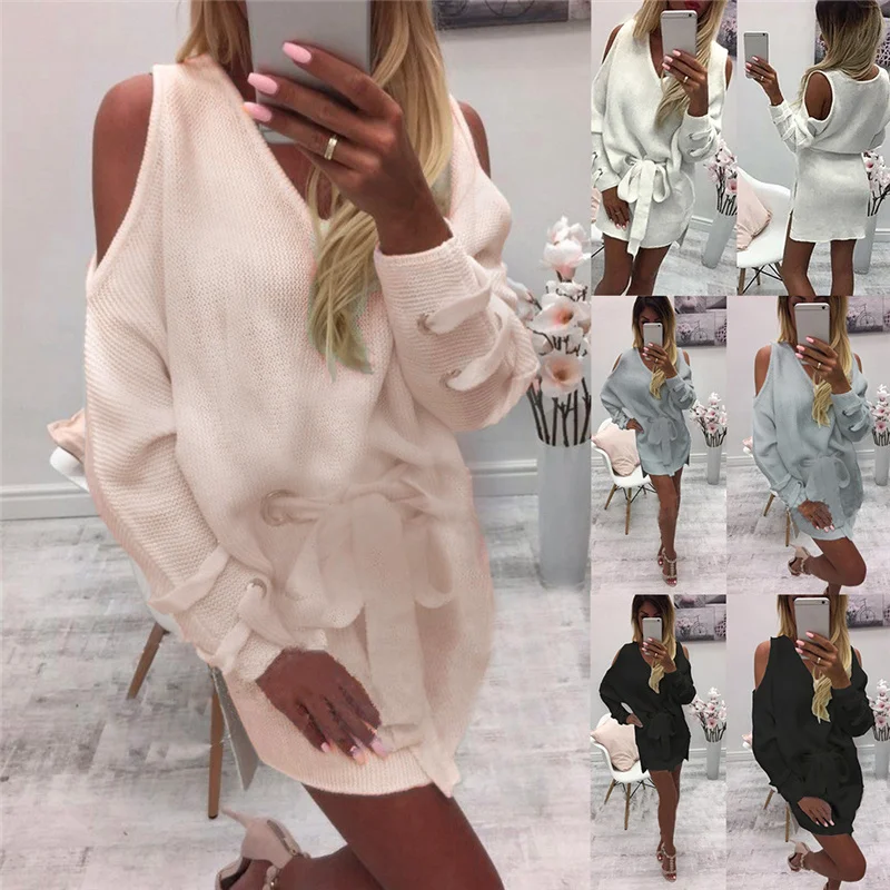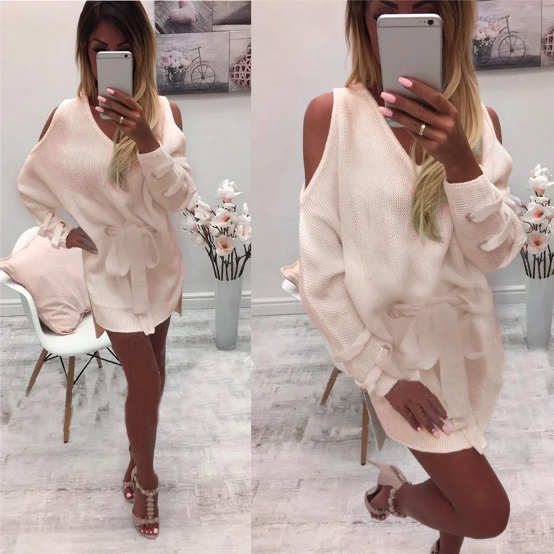 Женский пуловер, свободный свитер без бретелек с длинным рукавом, трикотажное платье