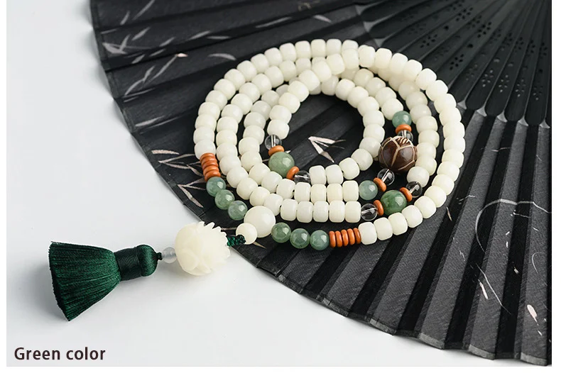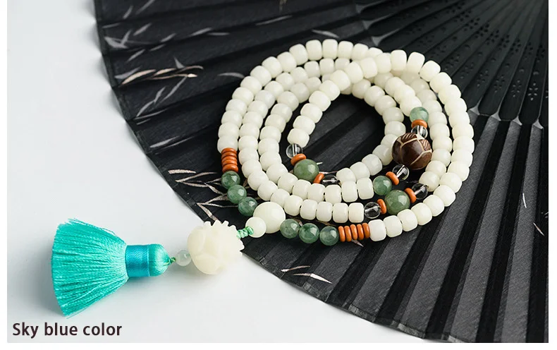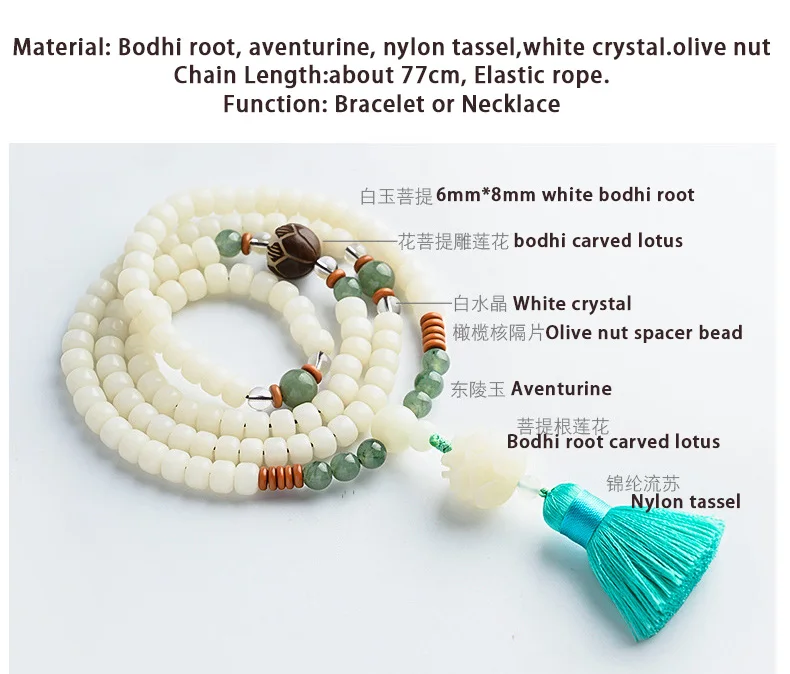 Белый корень дерева Бодхи бусы браслет с цветком лотоса и ожерелье кисточкой авантюрин белый кристалл исцеление йогой 108 мала Женская медитация ювелирные изделия
