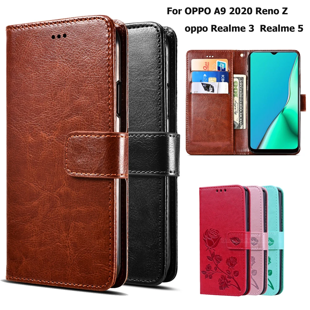 Чехол для телефона Oppo A9 2020 Reno Z с откидной крышкой для Oppo Realme 3 Realme 5 из высококачественной искусственной кожи, чехол-кошелек для телефона