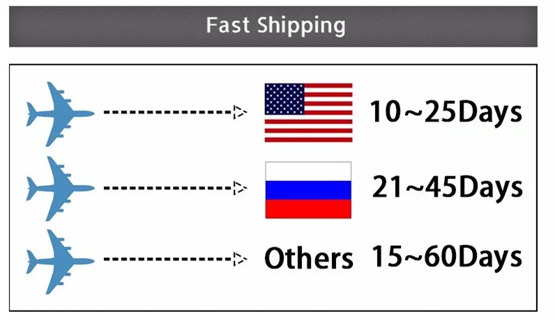 1. Как правило, мы отправим Ваш заказ в течение 1-4 рабочих дней.