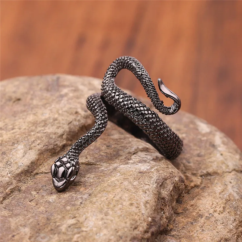 Креативное кольцо под змеиную кожу, открытые кольца, регулируемые размеры, кольца, ювелирное изделие, пистолет, черный Мужской Перстень, панк, преувеличенное кольцо под змеиную кожу
