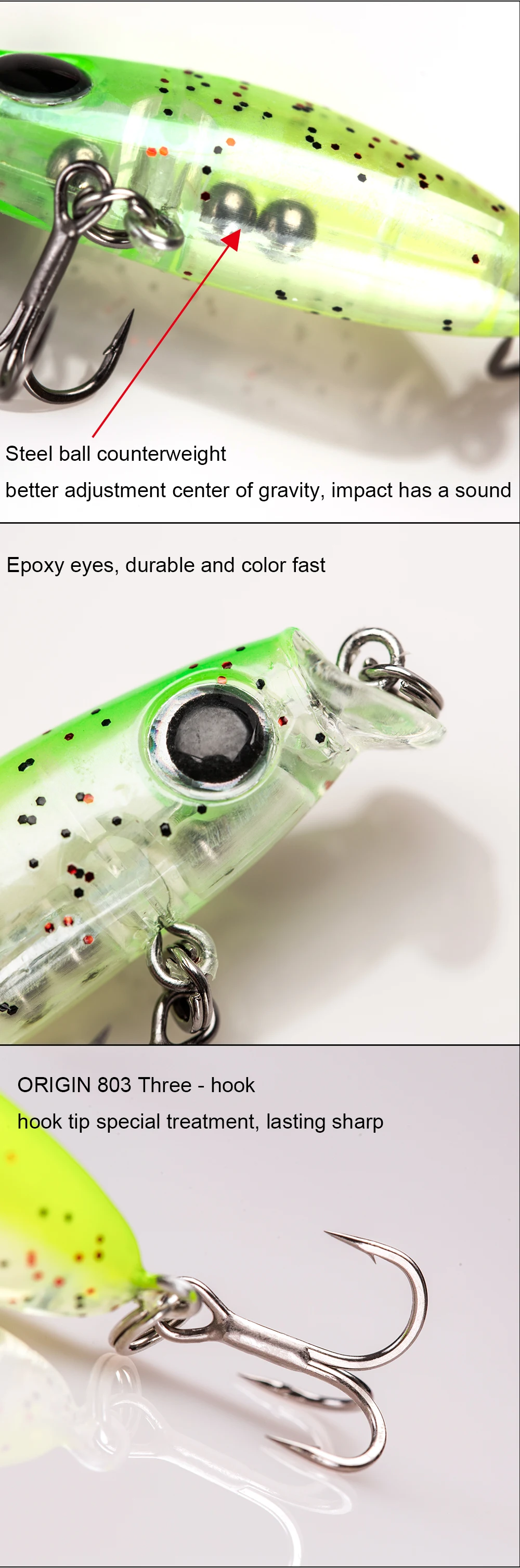 Бренд: OBEIМесто производства: КитайМодель: ныряльщиков подвесныеДлина: 42 ммВес: 2,5 г: Материал подошвы: полиуретан толщина 0,5-4,2 мИспользуйте прозрачную ПП упаковку цилиндра, она очень прочная, может использоваться повторноПосле использования не нужно выбирать приманку, с PP упаковочным ведром для храненияУдобно получить, избегайте друг друга от другаПосле сопротивления, приманка в воде имеет более реалистичные действияПять слоев краски спрей, цвет более светильник преломленияЭпоксидные глаза, прочные и цветные быстроПроисхождение 803 три-крюк, крюк наконечник специальная обработка, стойкий острый