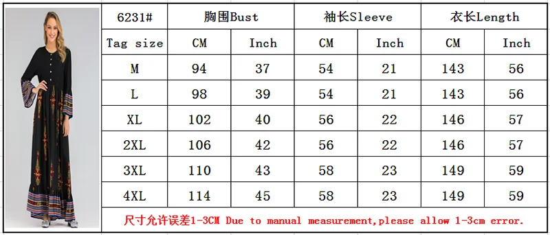 3XL: обхват груди 110 см, рукав 58 см, длина 149 см