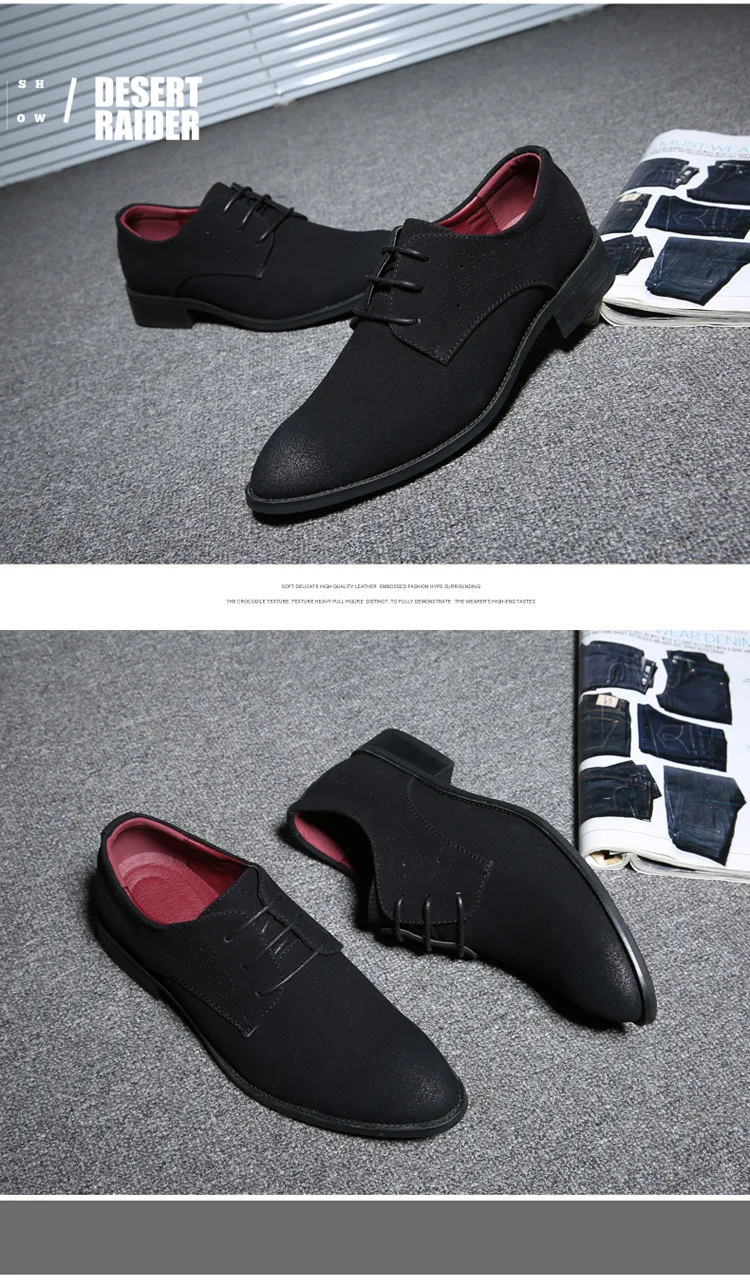 Lace-Up Med Heeled Men's Genuine Leather Dress Shoes Pointed-Toe Height Increasing Patchwork Stone Pattern Formal Brogue | Обувь