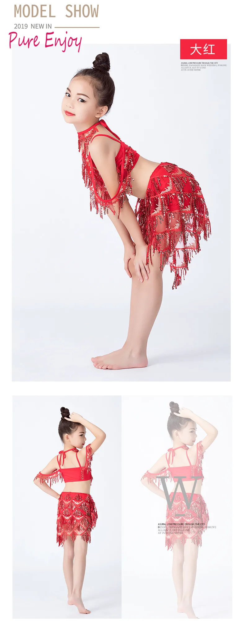 Children's Belly Dance Practice Clothing Set Children new sequins tassels inspired short skirt+top+Headwear 3pcs Dance Suit