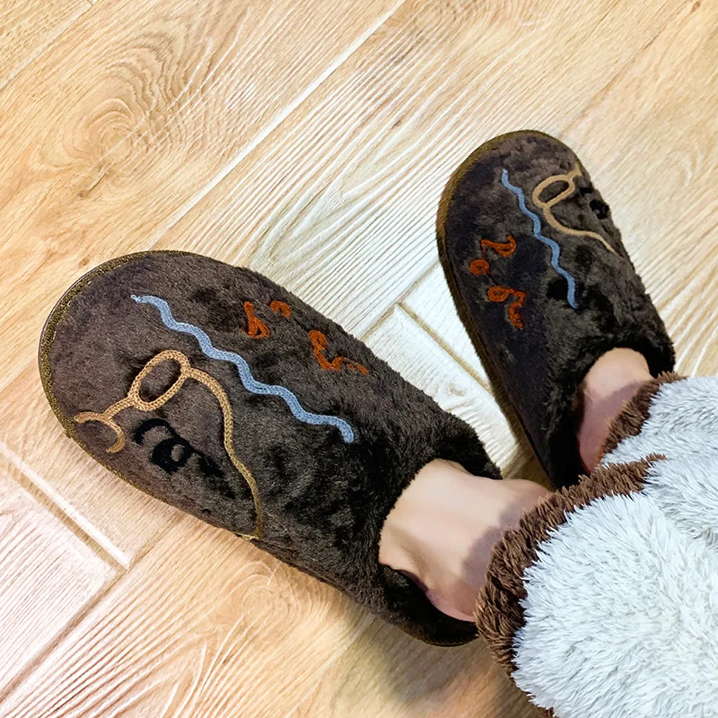 Новые мужские зимние модные Нескользящие плюшевые теплые домашние хлопковые туфли с рисунком овечки
