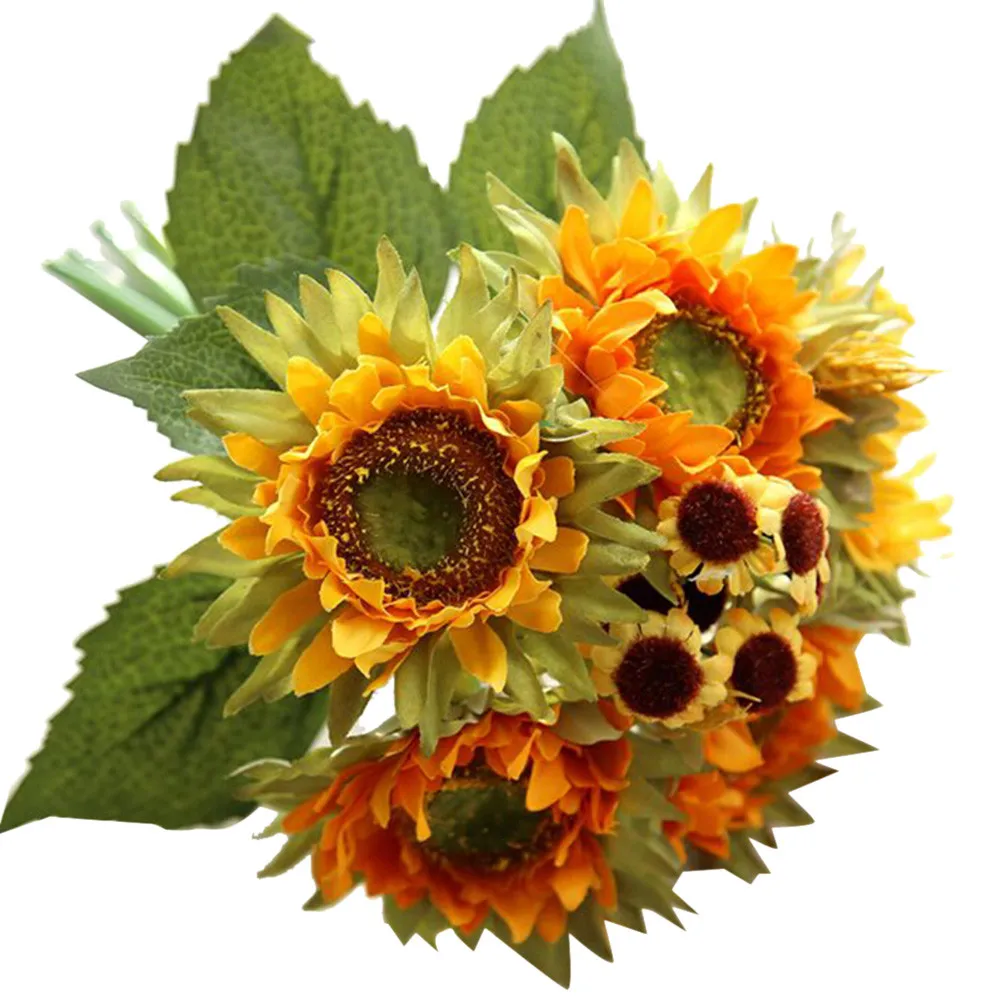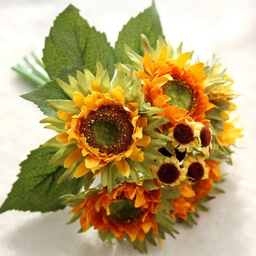 Осенние украшения, 5 голов, Желтые Подсолнухи, шелковые искусственные цветы, букет для украшения дома, офисные вечерние украшения для сада