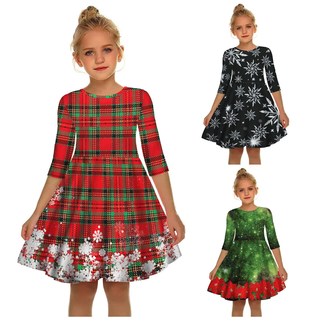 Рождественское платье с длинными рукавами и 3D принтом для девочек-подростков