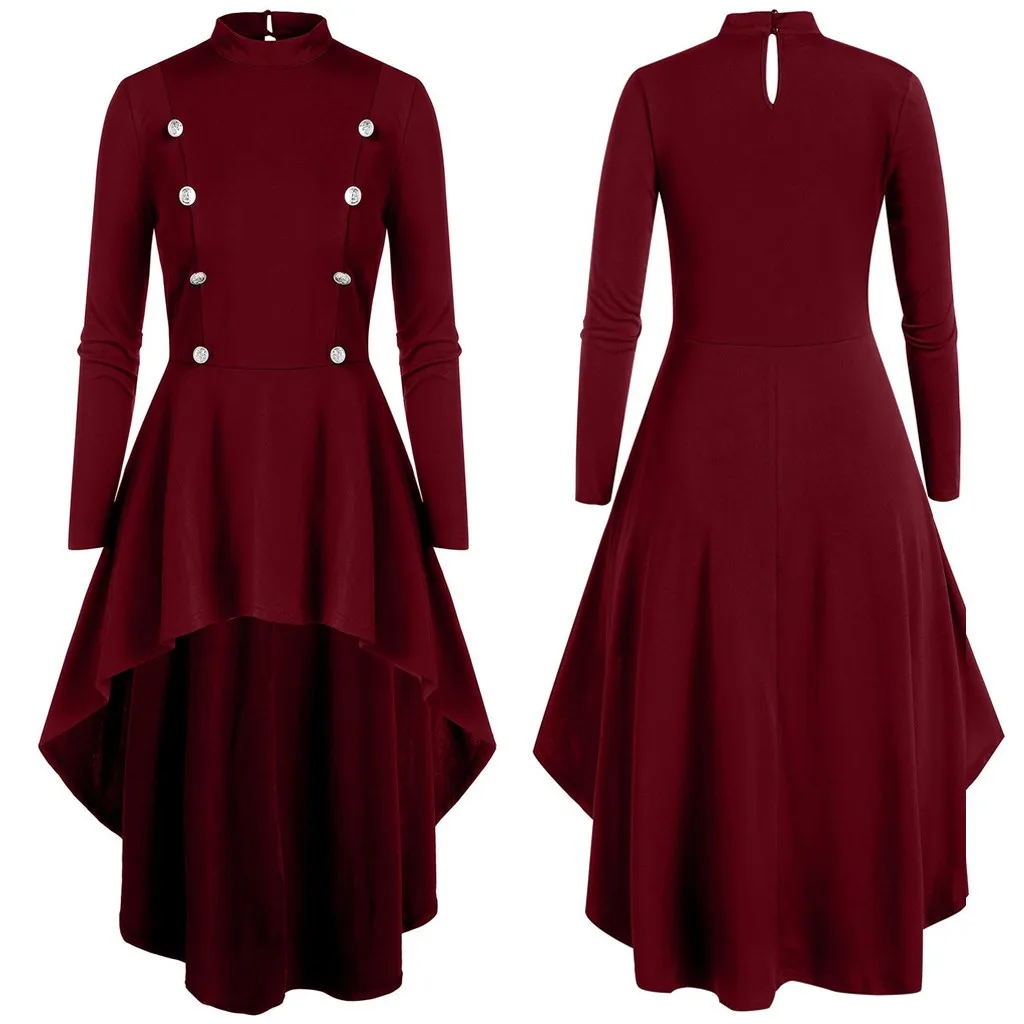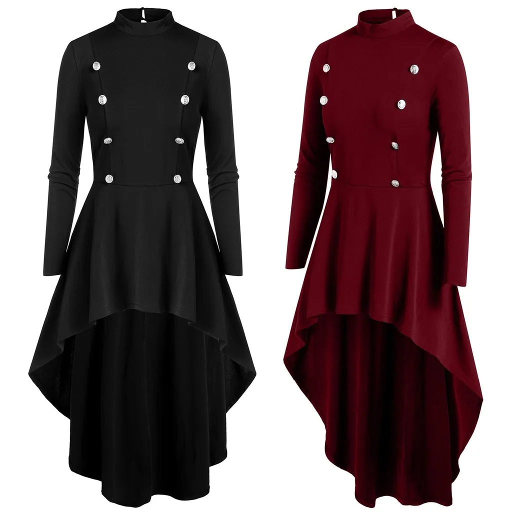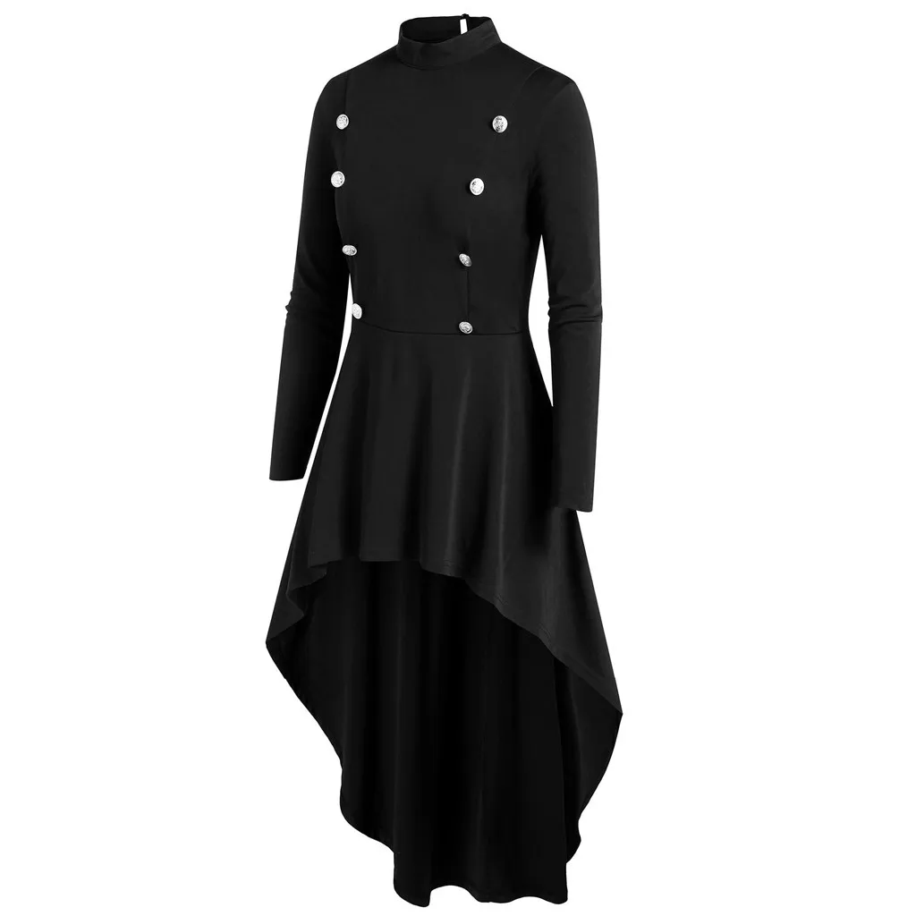 Модная Женская водолазка с длинным рукавом на пуговицах, готический Асимметричный Длинный топ