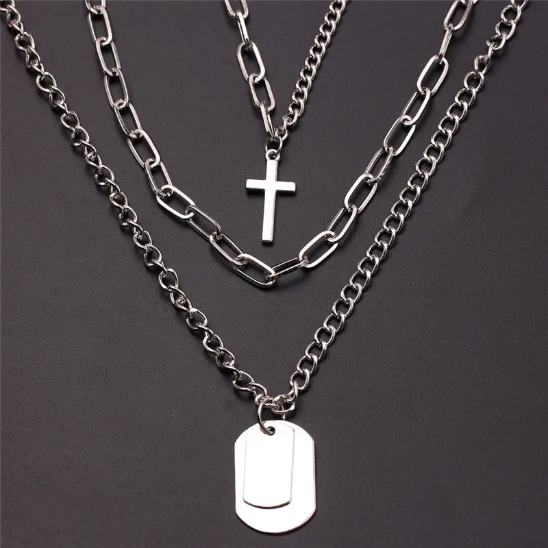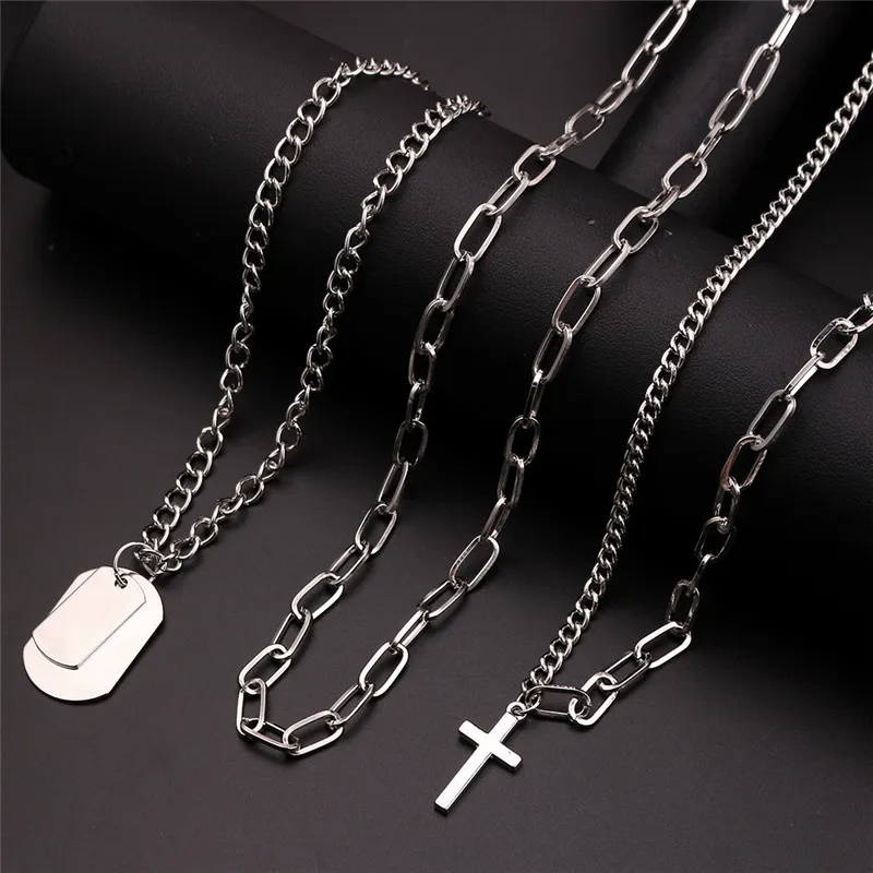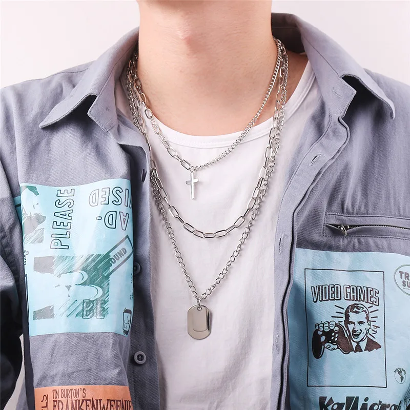 Крест ожерелье многослойное Панк Серебряная цветная цепочка для мужчин рок модное ожерелье рождественские подарки для женщин хип-хоп Colar