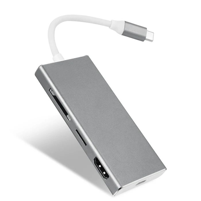 7-In-1 Type-C Hub Adapter 3 USB Ports HDMI Output Charging Port SD/Micro SD Card Reader for MacBook OD889