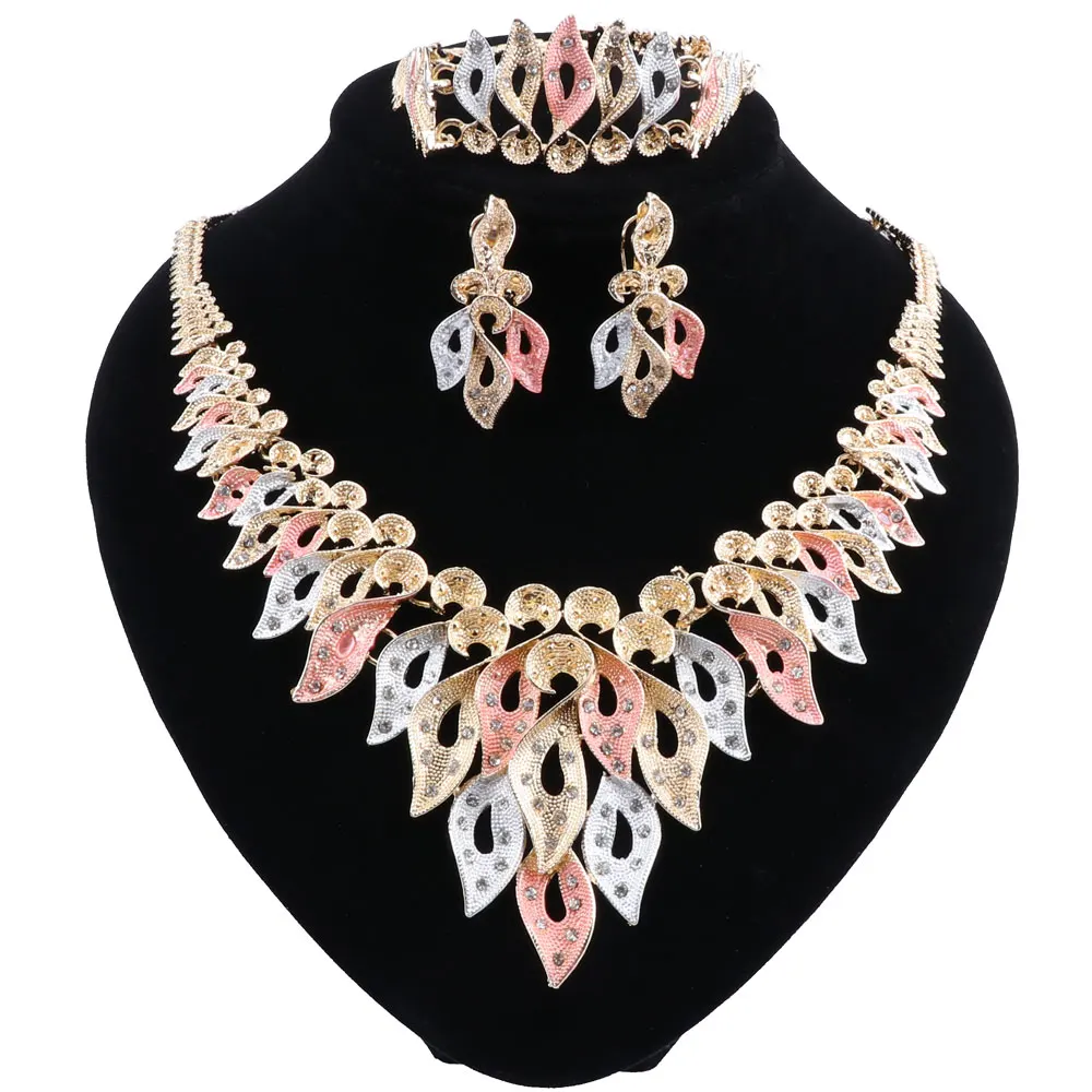 Модные Ювелирные наборы с розовыми кристаллами серьги ожерелье кольцо для
