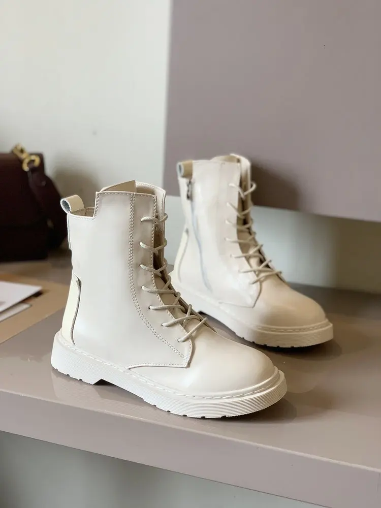 2019 зимние женские Ботинки Martin модные белые черные кожаные туфли с круглым носком