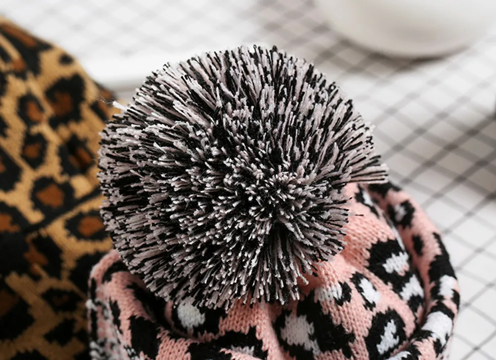 Леопардовая Шапка-бини для женщин и мужчин, зимняя Модная вязаная крючком шапка, Шапка-бини с помпоном, теплая шапка s czapka zimowa