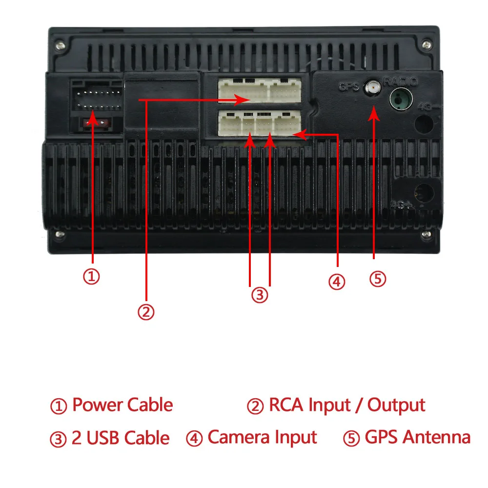 1 х Автомобильный MP5 плеер 1 x Антенна GPS 1 х электропроводка 2 х USB адаптер 1 х RCA входной и выходной провод 1 x Cam-в провод 2 x монтажный кронштейн