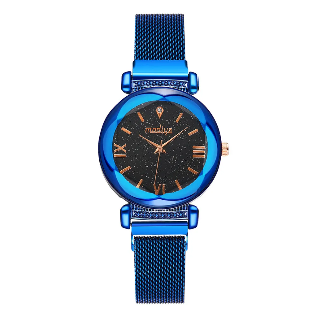 Модные часы со звездами, повседневные кварцевые часы из нержавеющей стали с сетчатым ремешком, женские кружевные часы с изображением римской звезды неба сливы, новинка 30 *