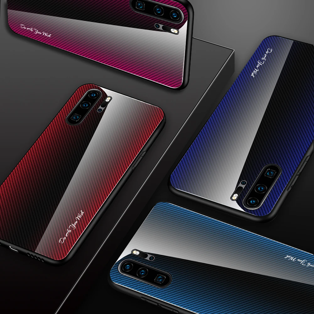 Для Huawei P30 P20 Lite 2019 P30 P20 Pro градиентные чехлы из закаленного стекла текстурный стеклянный чехол для телефона жесткая задняя крышка мягкая рамка из ТПУ