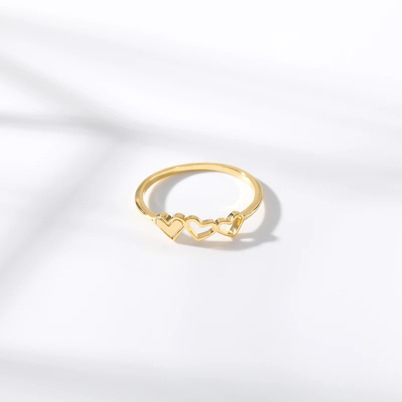 Романтическое кольцо с тремя сердечками для женщин и мужчин, кольцо с открытым носком, Anillos Mujer, Золотое кольцо, подарок для пары, ювелирные аксессуары BFF
