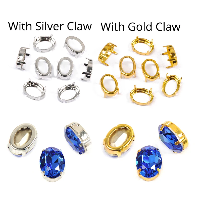 YANRUO 4120 Oval Blue Sapphire K9 Crystal With Silver Claws Rhinestones Sew On Strass Glass Sewing Dress Pointback Stones Gems