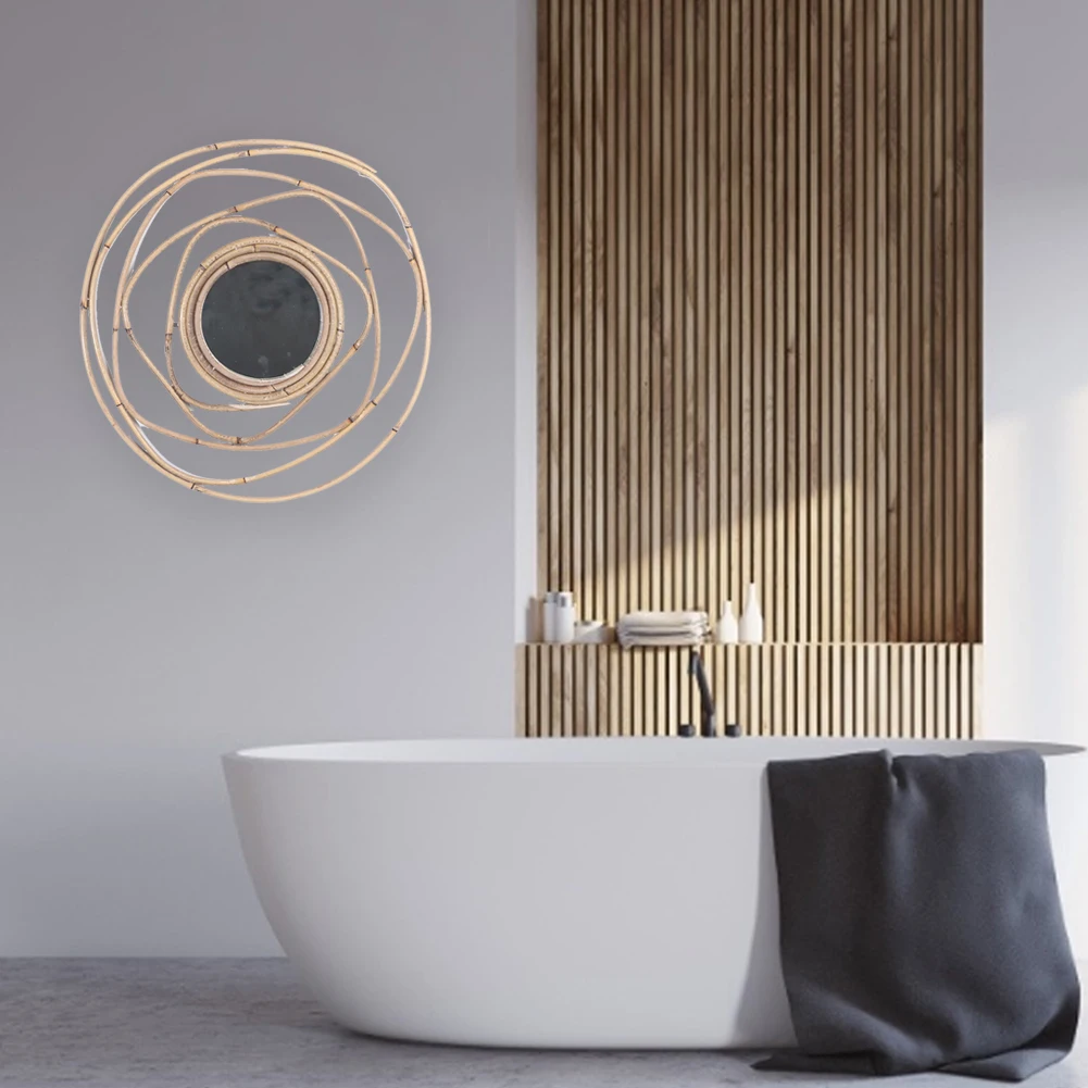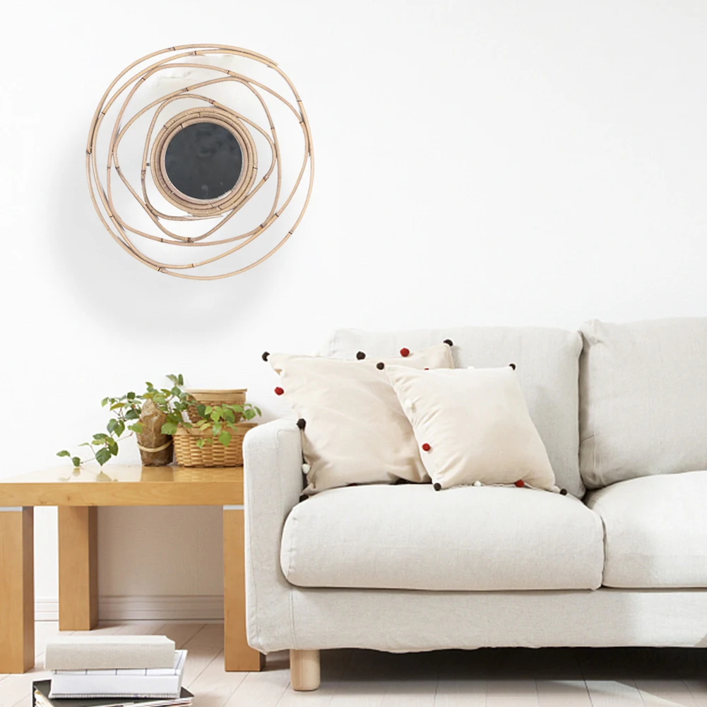 Wicker Woven Mirror Nordic Rattan Hanging Wall Decorative Mirror Art Deco Round Mirror Living Room Wall Hanging Mirror Hand-made Home Decoration