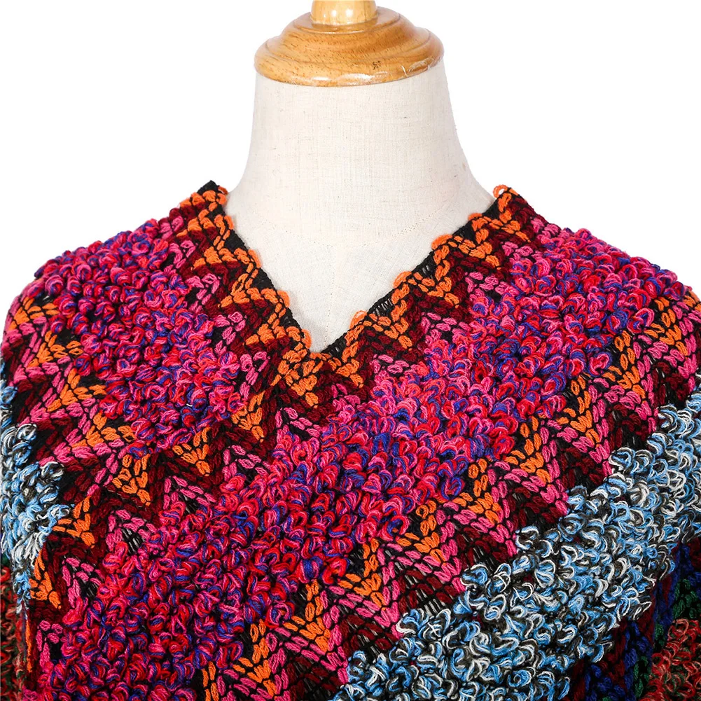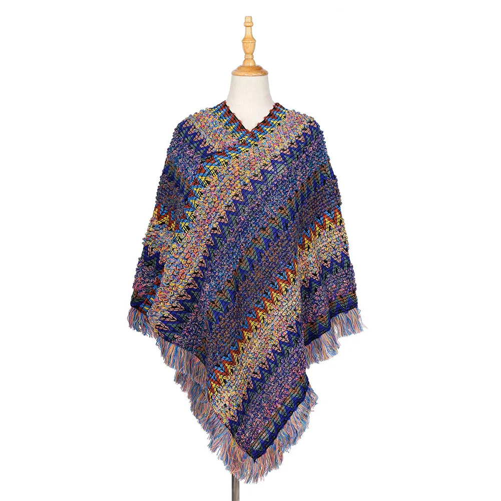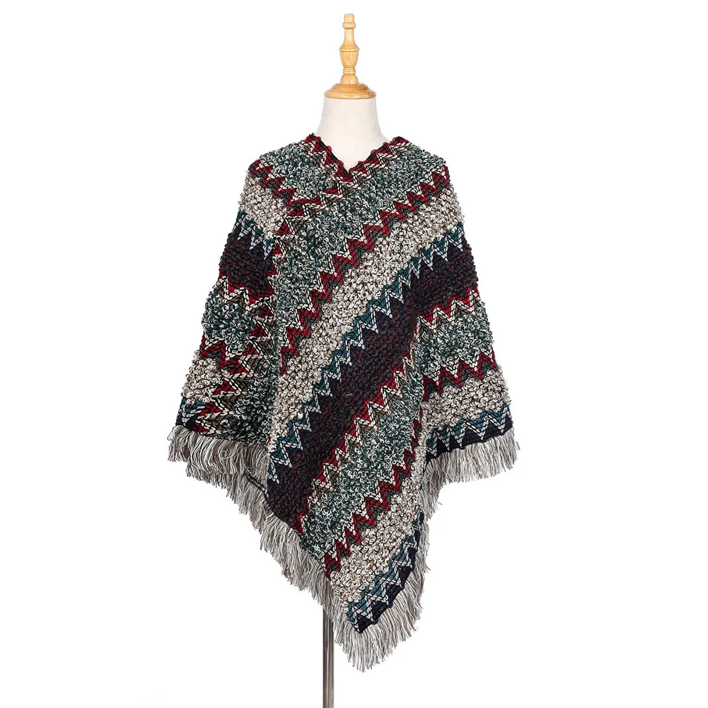 Зимний женский модный волнистый полосатый вязаный шарф пончо свитер кисточка шаль накидка