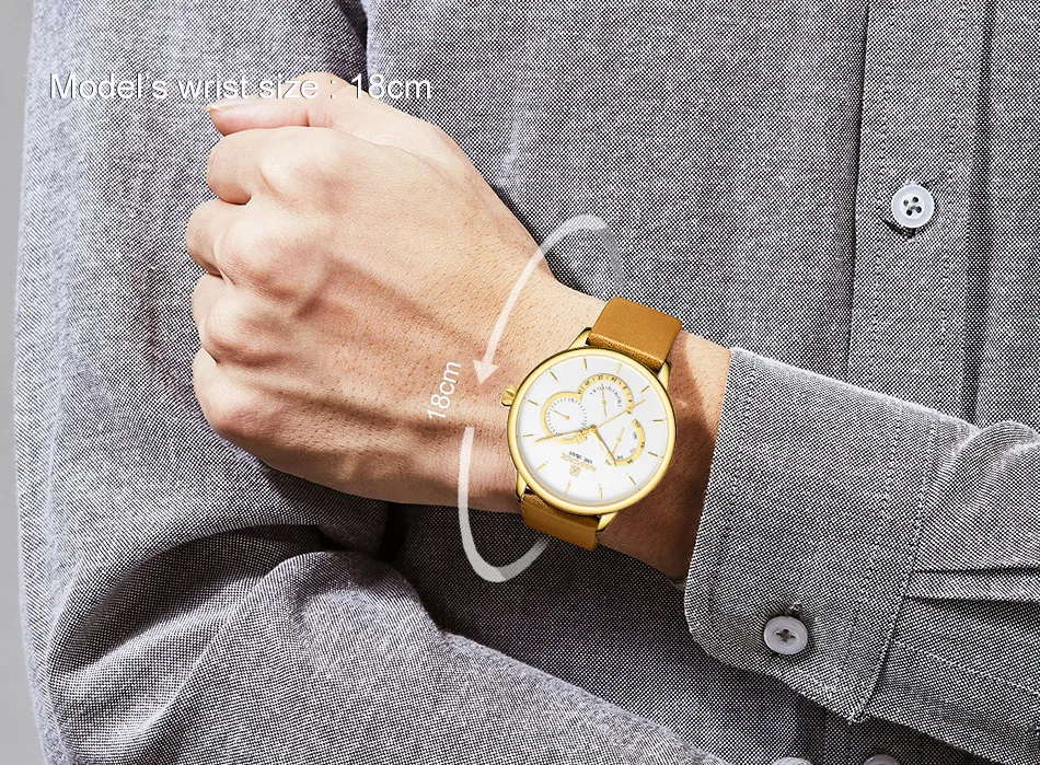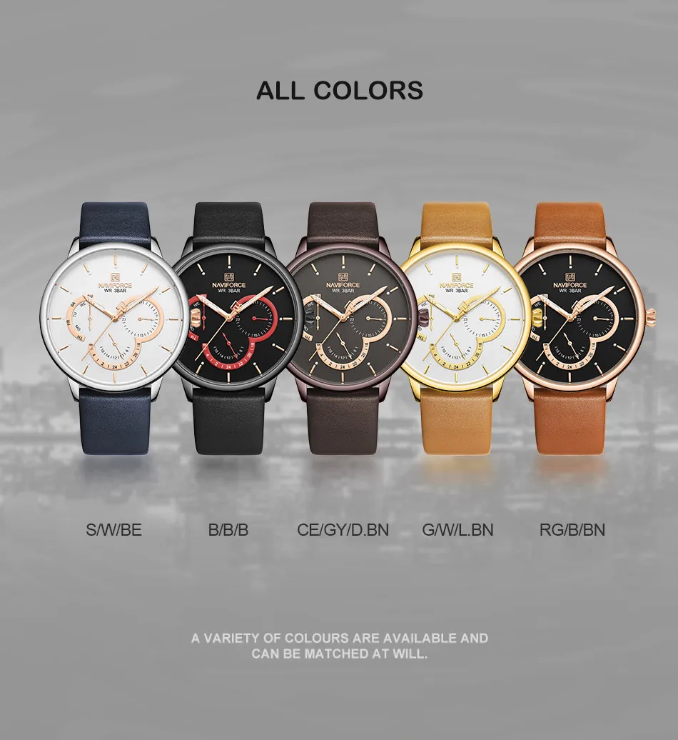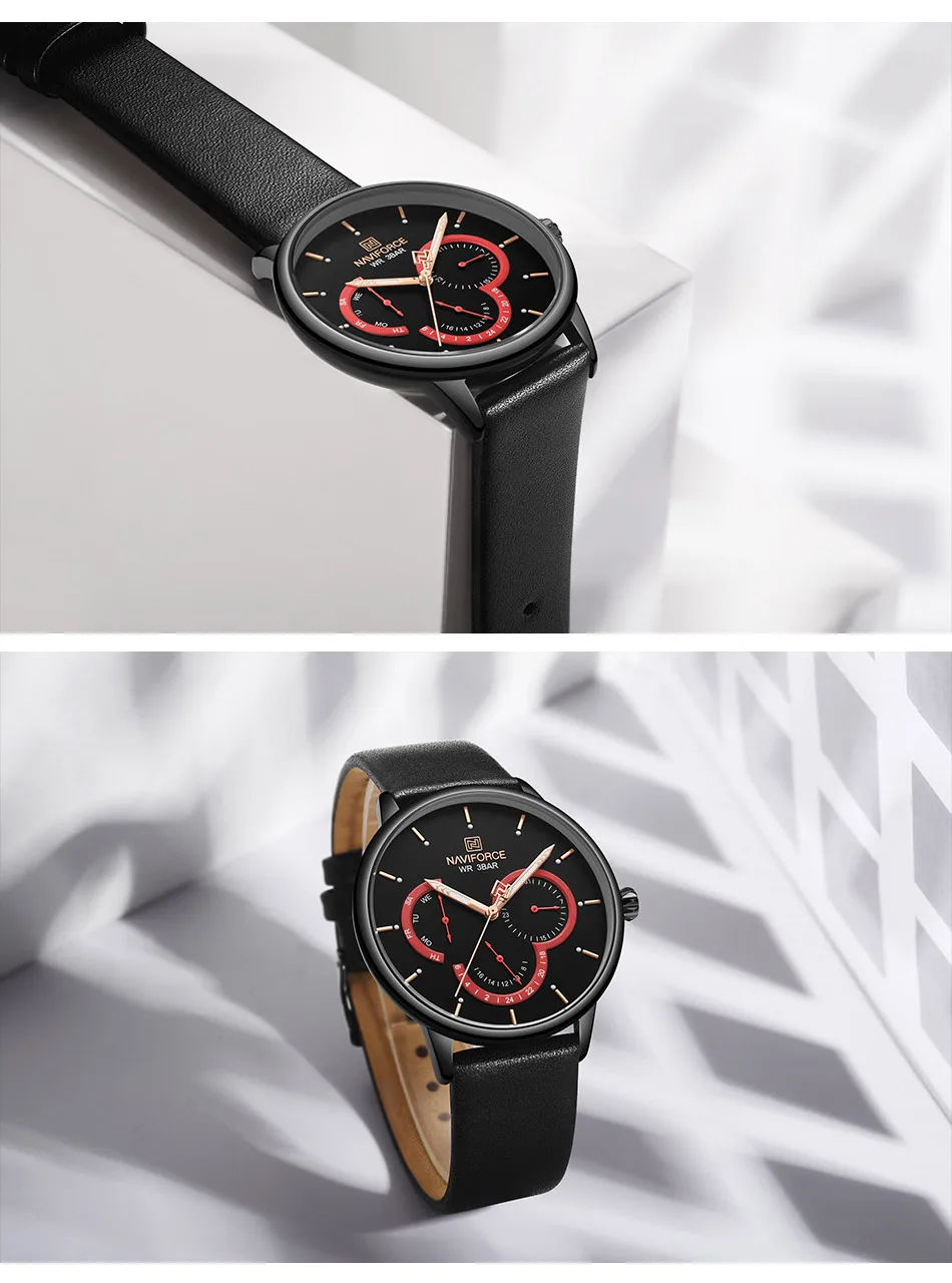 Часы-хронограф мужские Кварцевые водонепроницаемые с кожаным ремешком |
