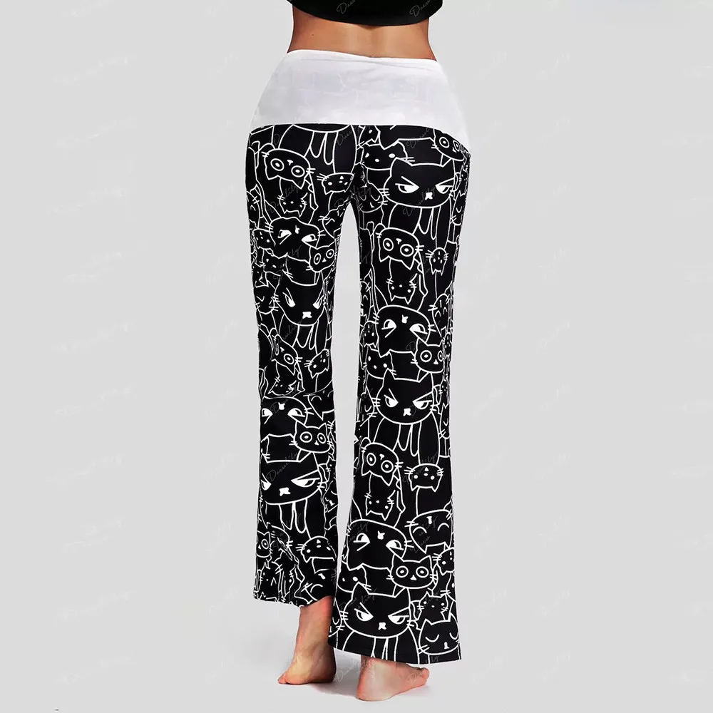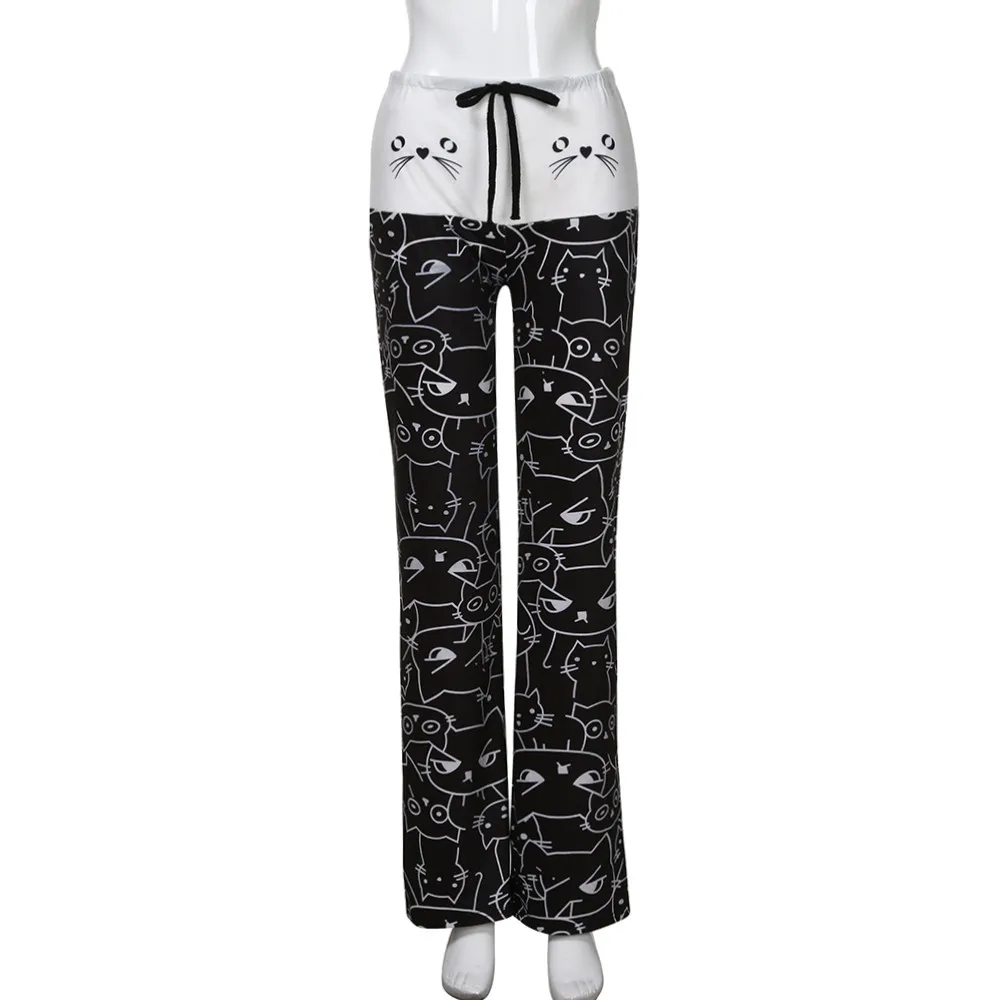 Женские повседневные леггинсы, с принтом кошки, на завязках