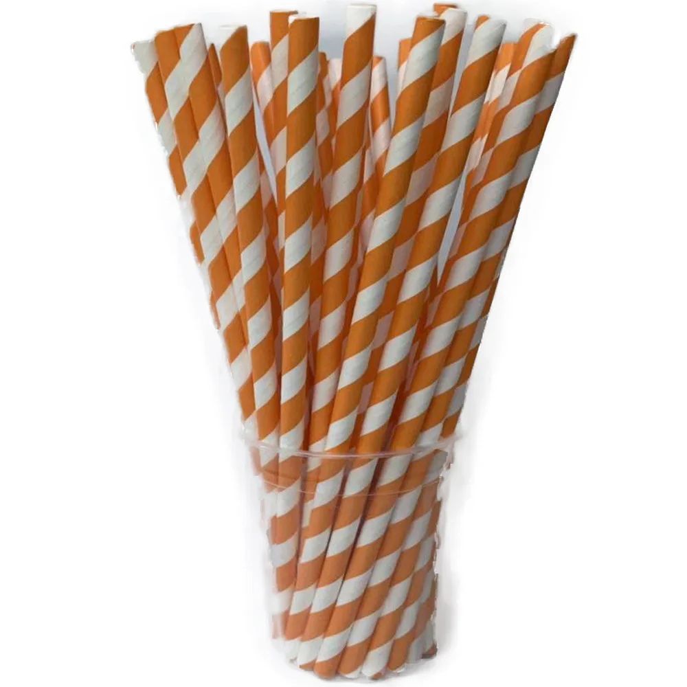Бумажные одноразовые трубочки на день рождения, бумажные крафт-бумажные принадлежности для сока, напитков, оранжевого цвета, золотого цвета