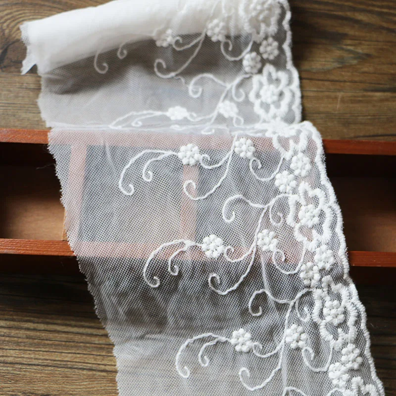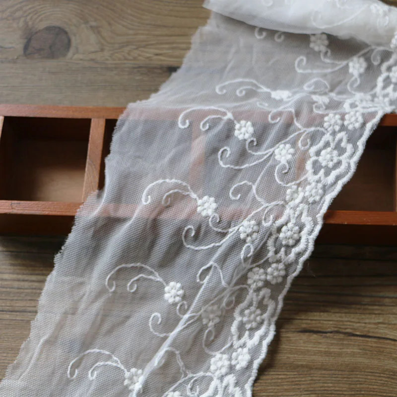 Материал Хлопок + сетка Цвет: белый Таблице: 2 м Ширина: 7-9 см Преобразования 1 дюйм = 2,54 см 1 см = 0,393 дюймов Использование: Свадебное украшение, юбка, воротник, подол, сумки, украшение для одежды DIY и т. д.
