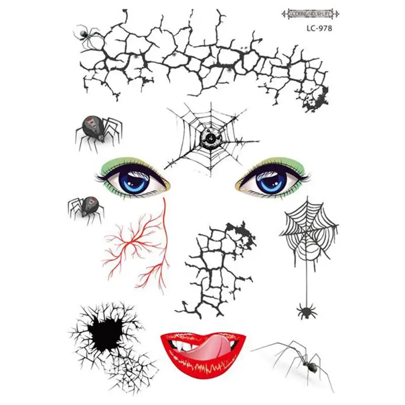 Эта водонепроницаемая лицевая наклейка тату на Хэллоуин имеет различные узоры. Каждый узор не слишком сложный, атмосфера забавная, реалистичная форма шрамов, а Маскарад-отличный выбор.